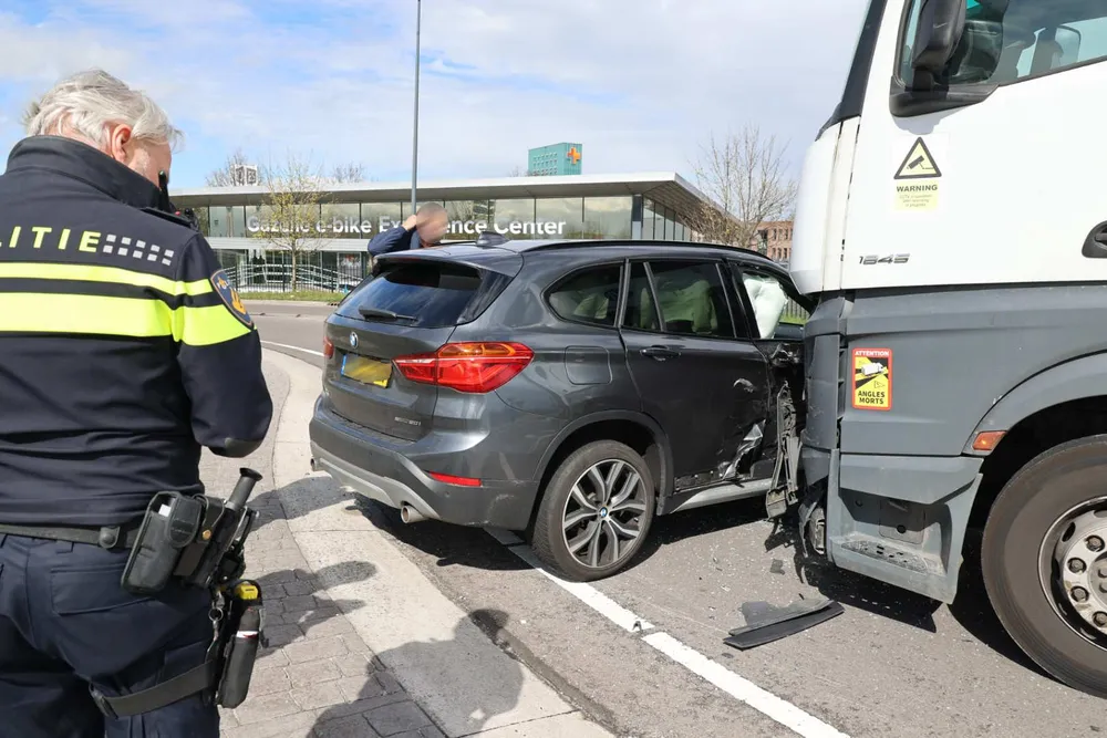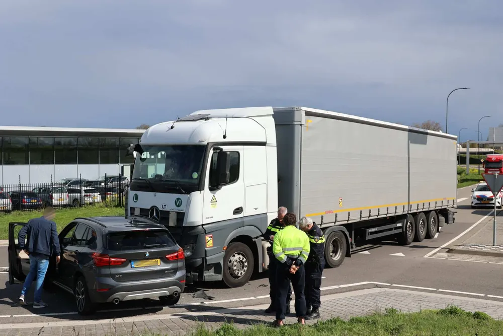WAALWIJK - Op de rotonde aan de Biesbosweg in Waalwijk is woensdagmiddag 12 april, rond de klok van 15.15 uur, en vrachtauto op een personenauto gebotst.