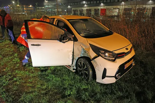 De bestuurder van de witte KIA, die pas twee maanden in het bezit was van zijn auto, kwam met de schrik vrij. Beide voertuigen liepen zichtbare schade op door de botsing.