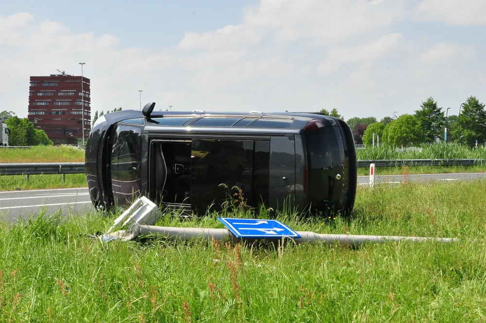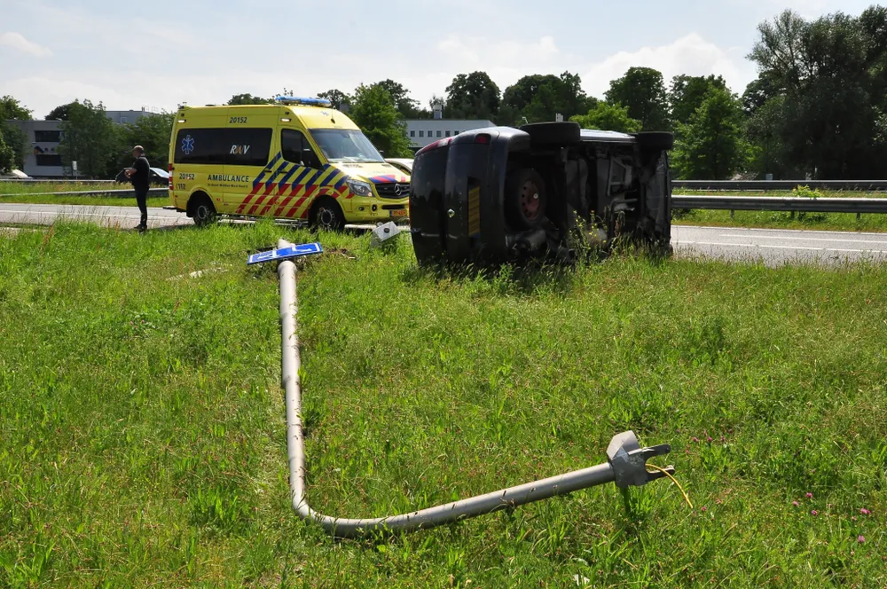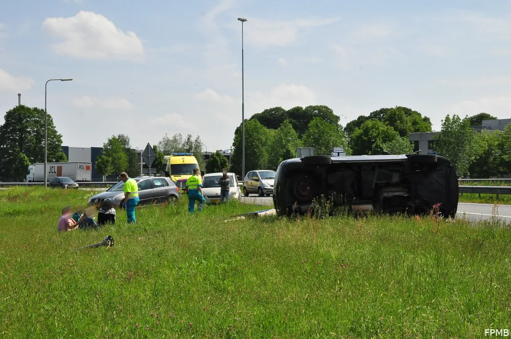 Op de afslag Waalwijk Centrum (A59) is vrijdagmiddag een automobilist de macht over het stuur verloren waarna de auto op zijn zijkant in de berm terecht kwam.