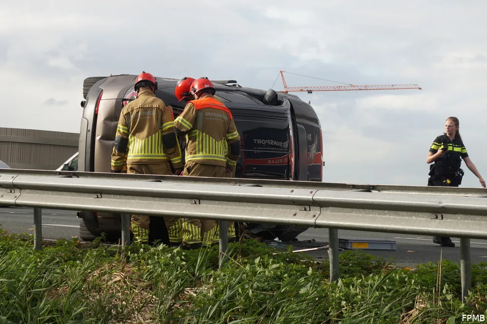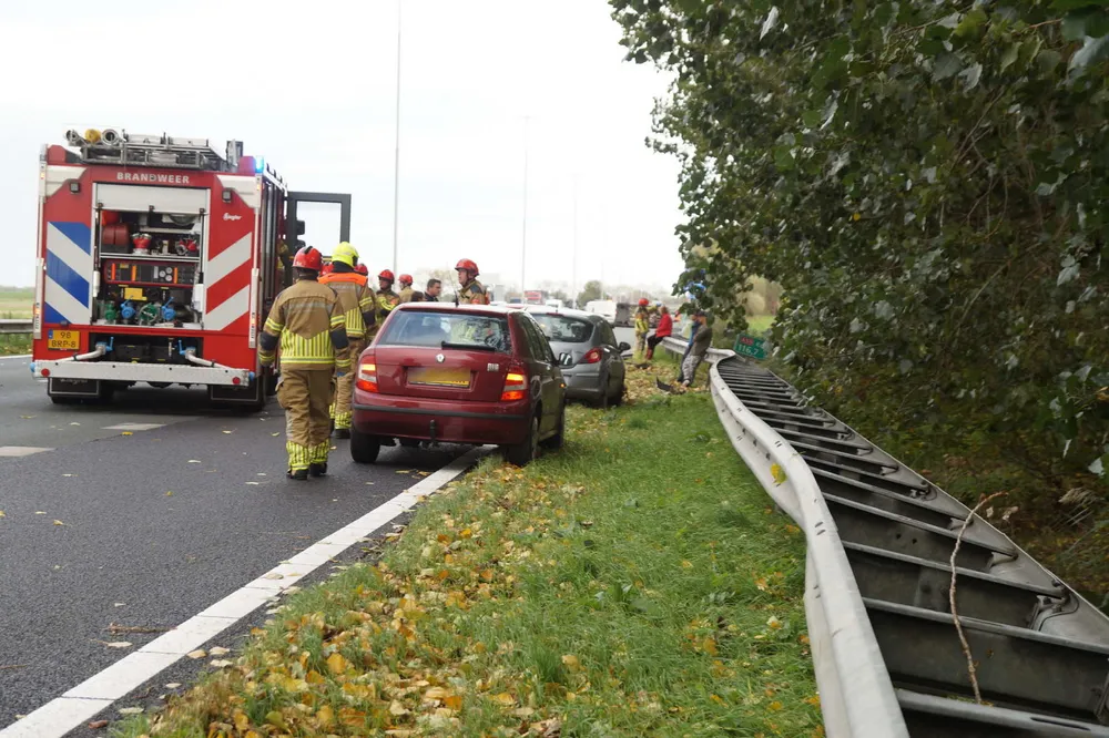 WAALWIJK - Op de A59 bij Waalwijk zijn maandagmiddag rond de klok van 15.40 uur twee auto's op elkaar gebotst. Een van de auto's reed tegen de vangrail aan waarna deze auto op de zijkant terecht kwam.