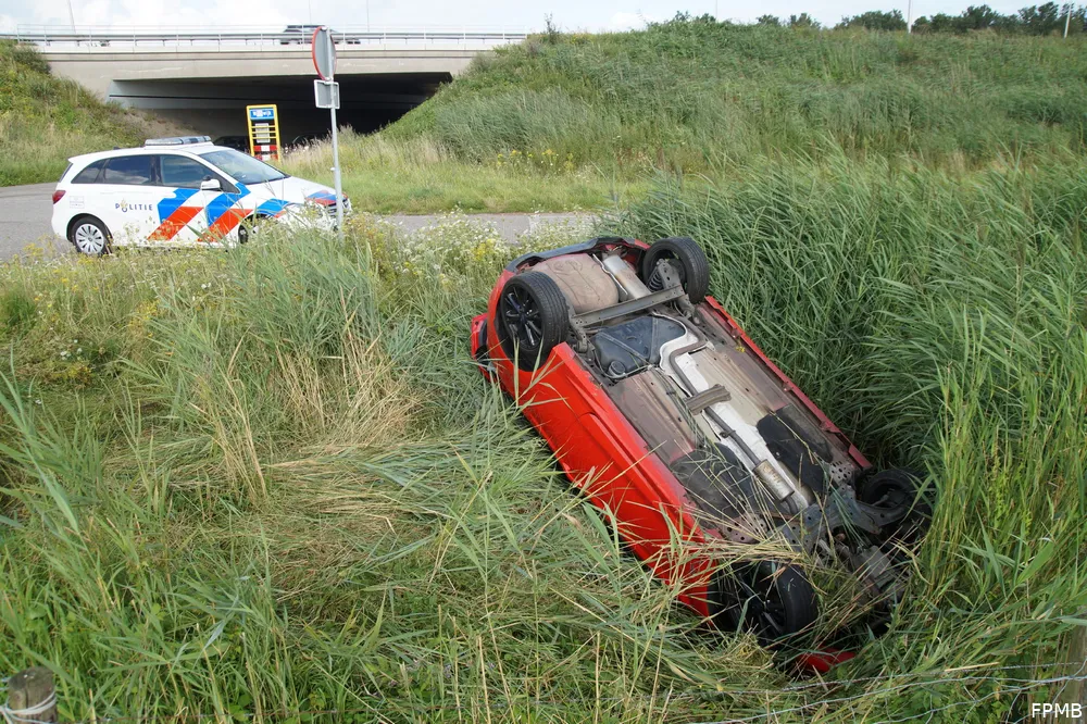 Naast de automobilist zat er ook nog een andere inzittende in de auto. Beiden wisten op eigen kracht uit het voertuig te komen. Een ambulance kwam ter plaatse om de inzittenden te onderzoeken. Het is niet bekend of zij gewond zijn geraakt. Hoe het ongeluk precies heeft kunnen gebeuren, is nog onduidelijk.