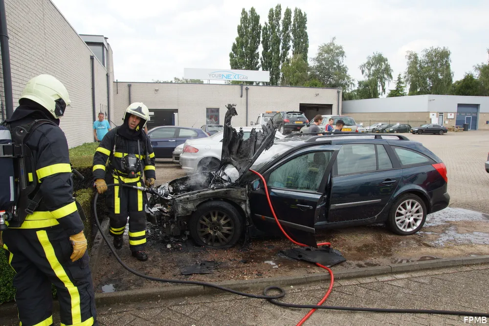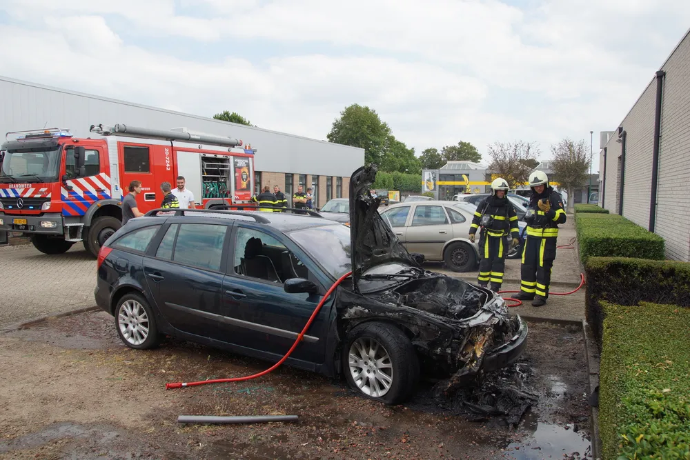 Bij een garagebedrijf aan de Hoogt in Loon op Zand is woensdagmiddag een auto in vlammen opgegaan. Ook een stuk van de heg was niet meer te redden en brandde weg.