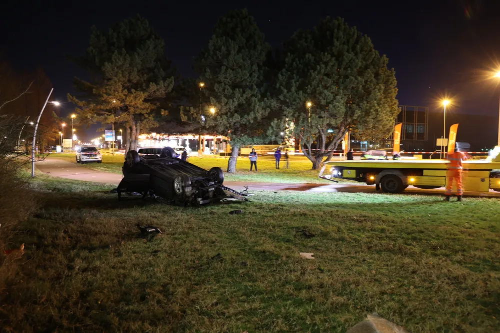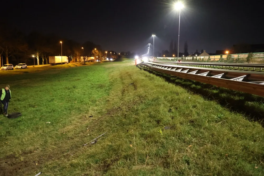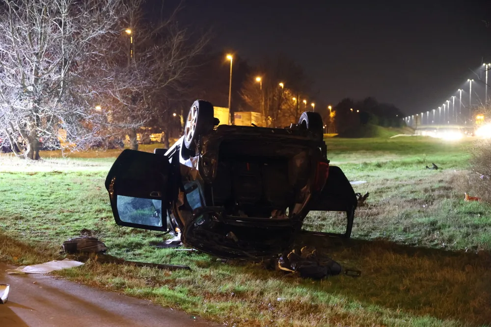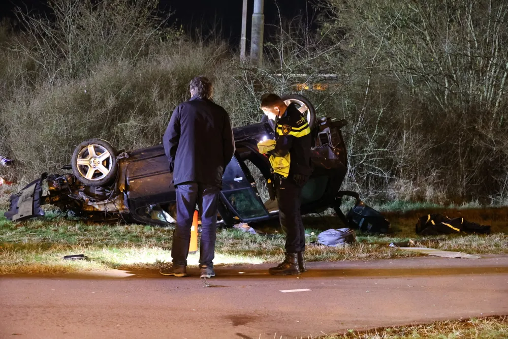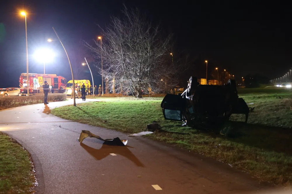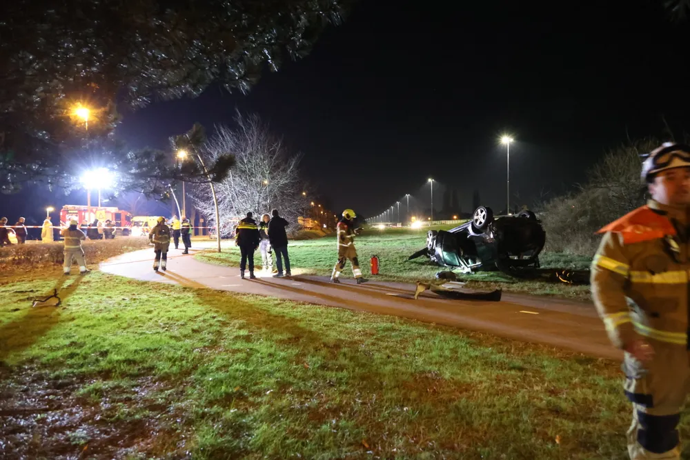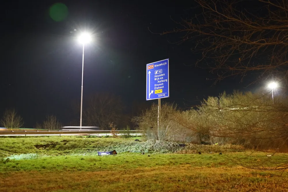 DRUNEN - Zondagavond 7 januari is een auto van de weg geraakt op de A59 bij Drunen en ondersteboven naast de Spoorlaan tot stilstand gekomen, waarbij twee inzittenden gewond raakten.