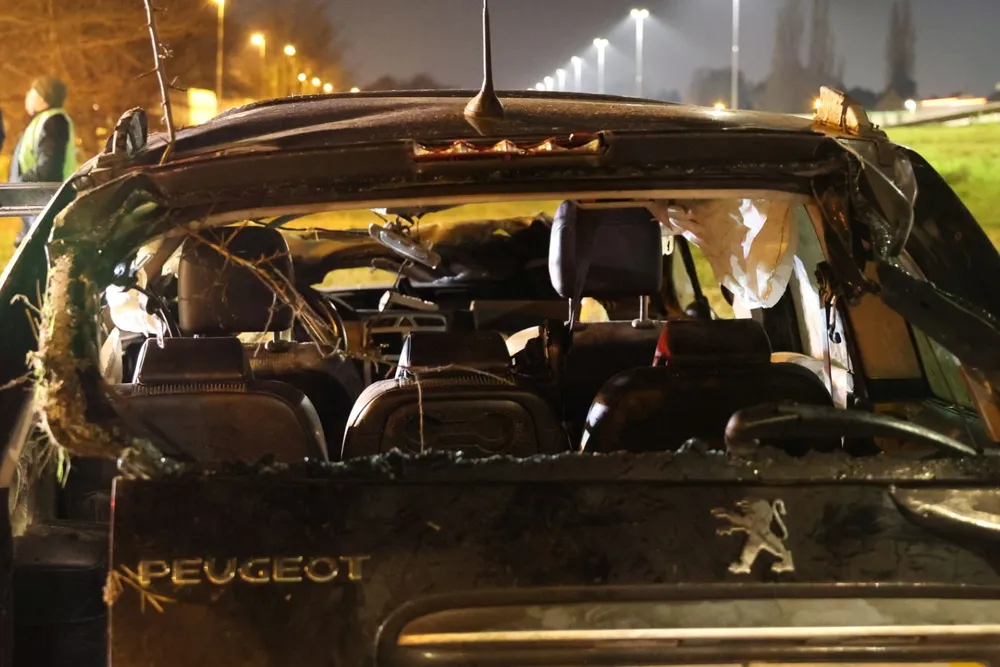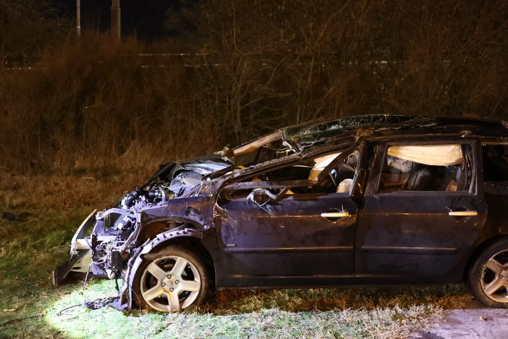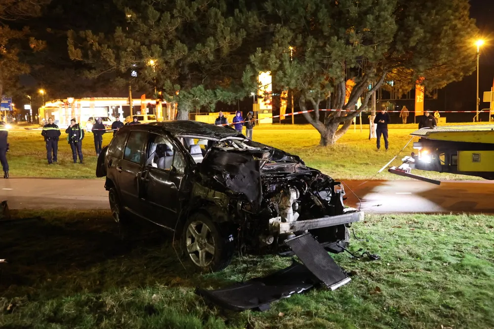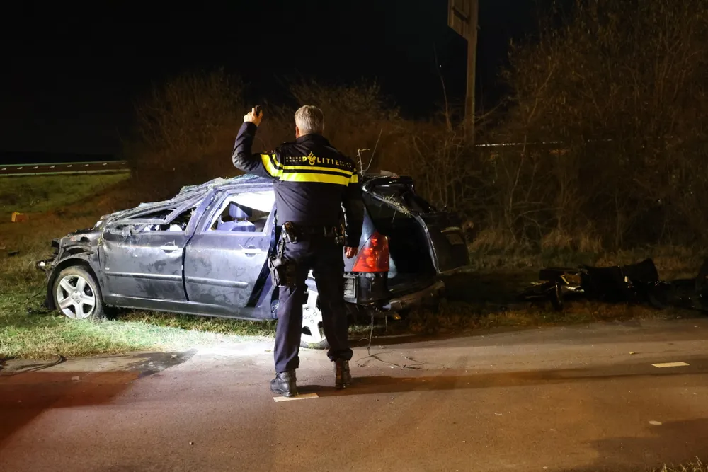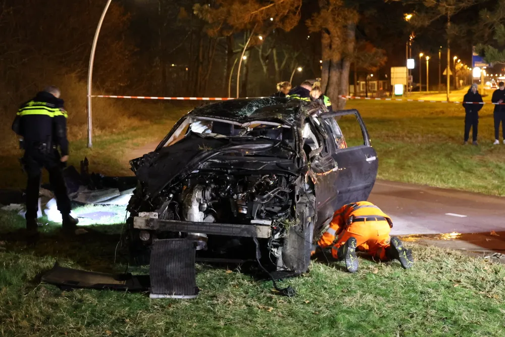 De auto liep aanzienlijke schade op door de harde klap. De politie voert verder onderzoek uit om de oorzaak van het ongeluk te achterhalen.