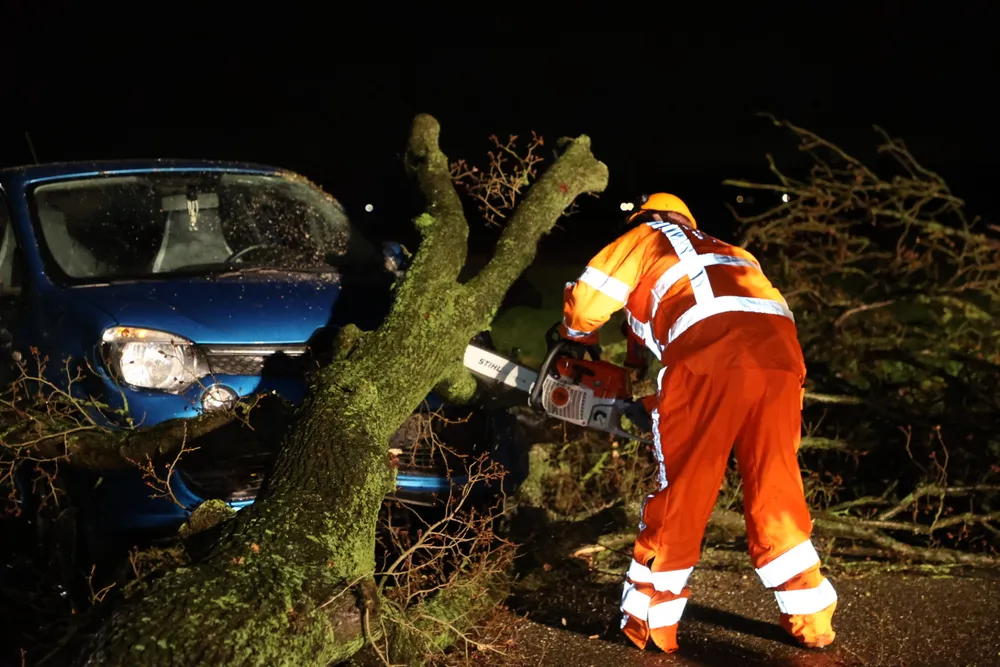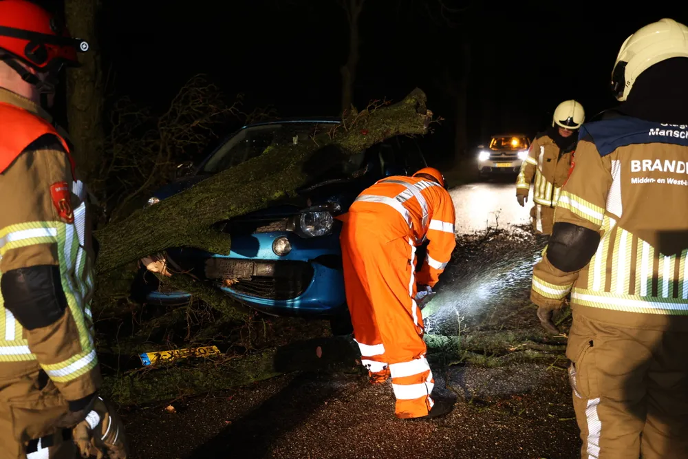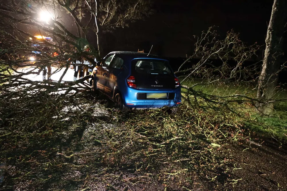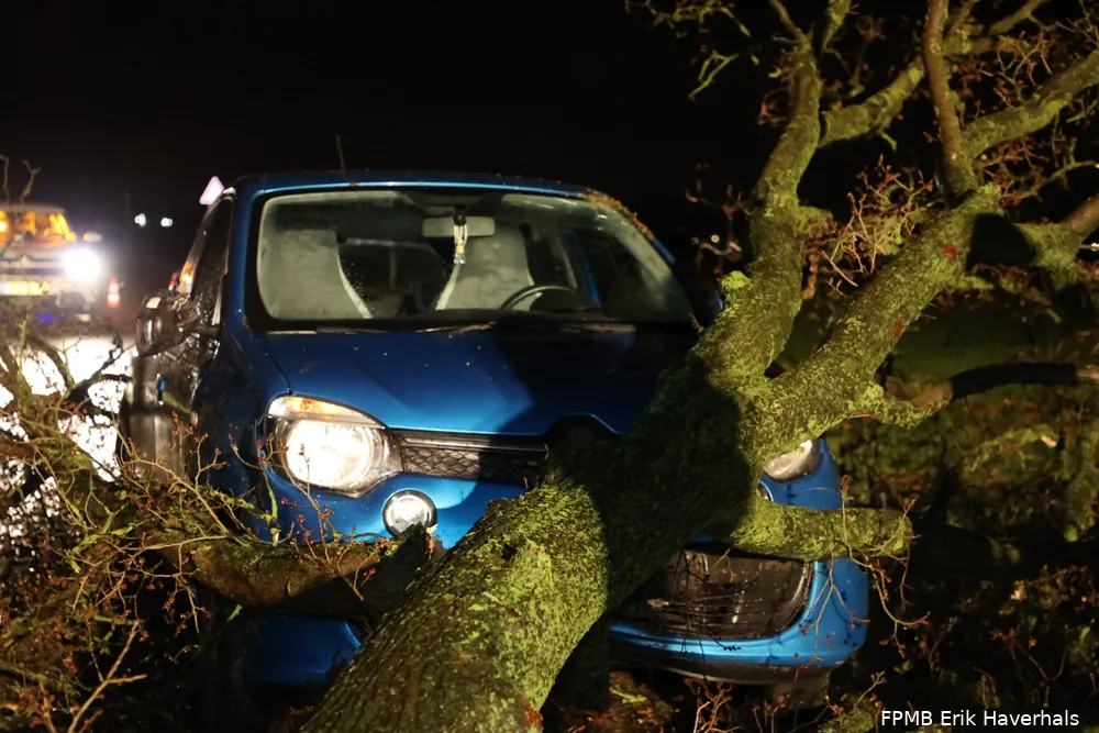 De auto zat helemaal verstrikt in de takken van de boom, waardoor het langere tijd duurde voordat brandweerlieden de wagen los kregen. Het voertuig raakte door het ongeluk zwaar beschadigd.