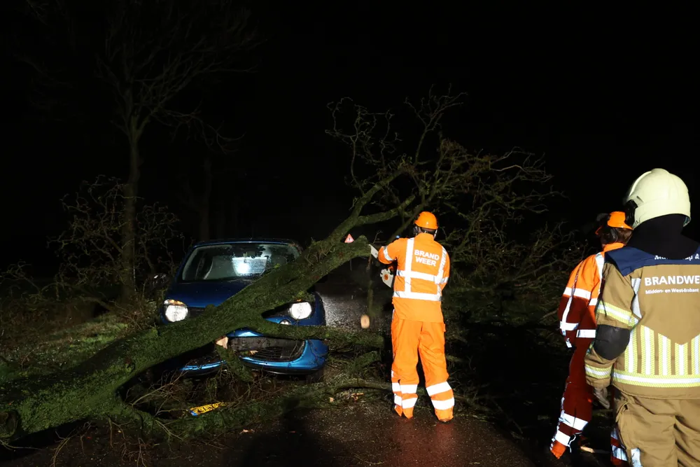 SPRANG-CAPELLE - Op de Capelseweg in Sprang-Capelle is zondagavond een automobilist tegen een omgevallen boom gereden. De brandweer heeft de auto uit de boom gezaagd. Bij het ongeluk kwam de bestuurder met de schrik vrij.