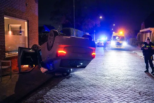 WASPIK - Op woensdagavond 13 november, net voor middernacht, is een bestuurster met haar auto op haar kop terechtgekomen. Het ongeval gebeurde op de Schotse Hooglanderstraat in Waspik.