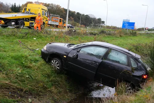 LOON OP ZAND - Op dinsdagmiddag 19 november is op de N261, in de richting van Kaatsheuvel, vlak voor de afslag Loon op Zand een auto met twee inzittenden van de weg geraakt.