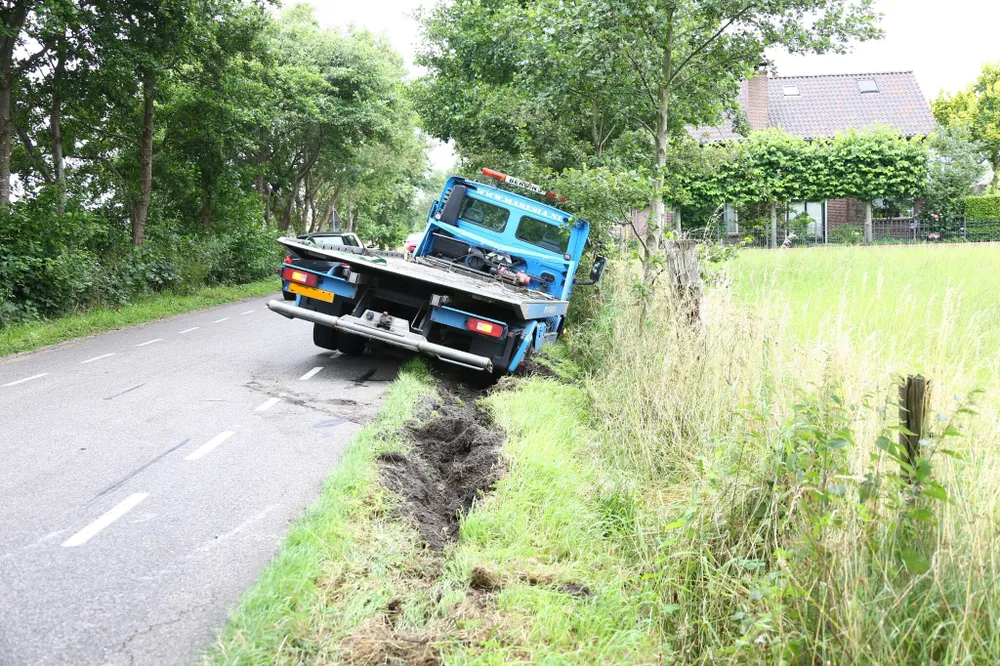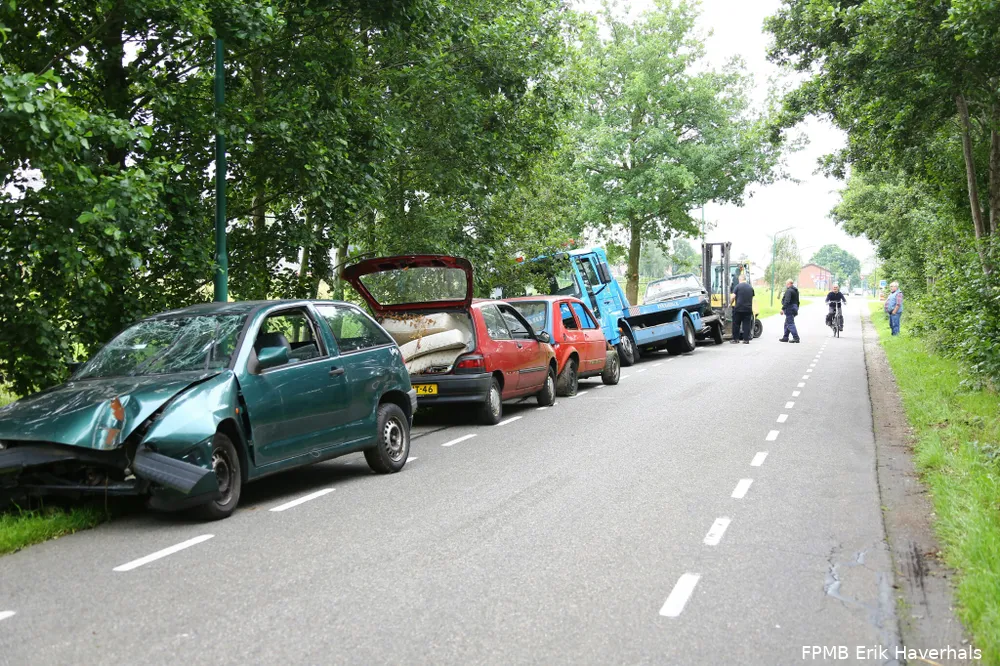 Aan de Capelsestraat in Kaatsheuvel is vrijdagmiddag een autoambulance met 3 sloopauto's van de weg geraakt omdat hij moest uitwijken voor een tegemoetkomende auto.