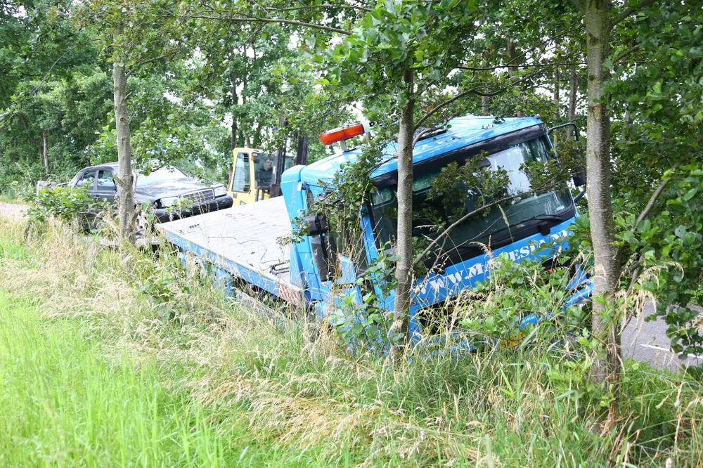 De auto's zijn eerst met een vorkheftruck van de autoambulance gehaald. Vervolgens is de aanhanger weggetrokken en is hij opgetild en achteruit uit de sloot gehaald. Wat de schade aan de autoambulance is is niet bekend. Alles is afgevoerd naar een sloopbedrijf.