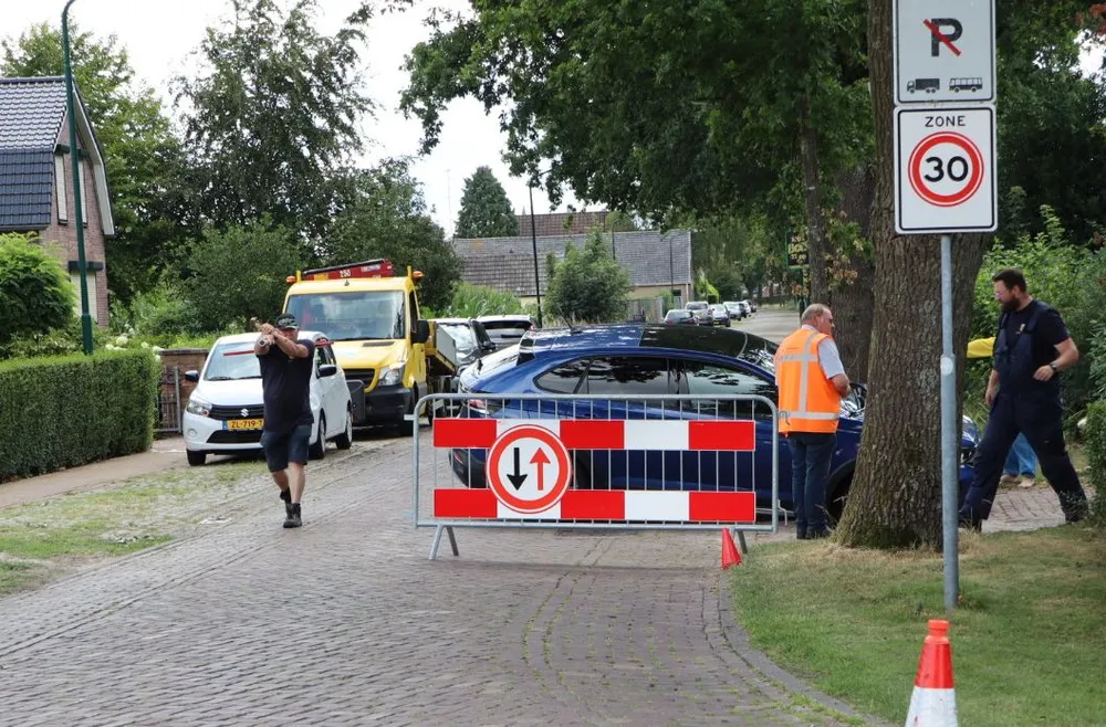 Door onbekende oorzaak was er een groot gat ontstaan in het straatwerk. De auto zakte met het rechter voorwiel in het gat. Een takelbedrijf heeft de auto uit het gat gehaald. Ook de gemeente kwam naar de straat om hekken en borden te plaatsen. Het straatwerk was al op meerdere plaatsen aan het verzakken. De kans bestaat dat een groot deel opnieuw moet worden bestraat.