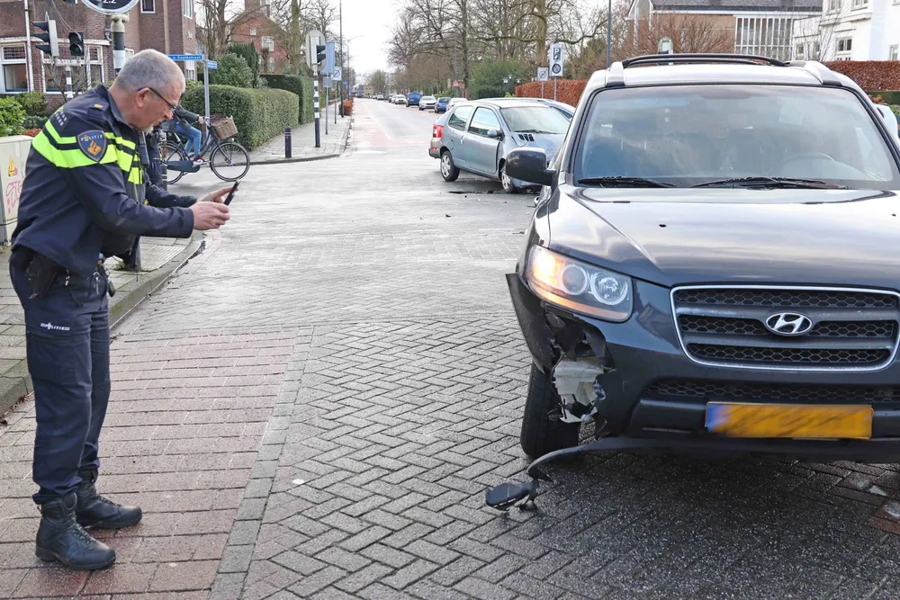 Op deze kruising waren twee auto's met elkaar in botsing gekomen. Een van de inzittenden liep lichte verwondingen op en werd behandeld door het ambulancepersoneel. De politie onderzoekt de toedracht van het ongeval.