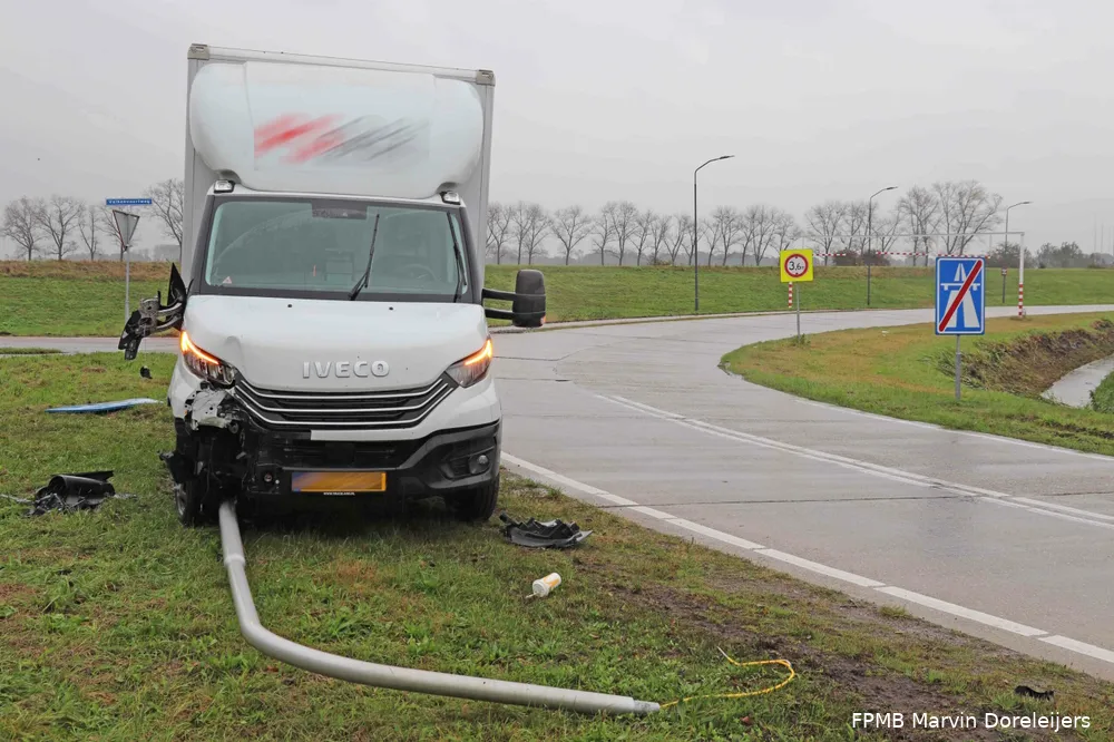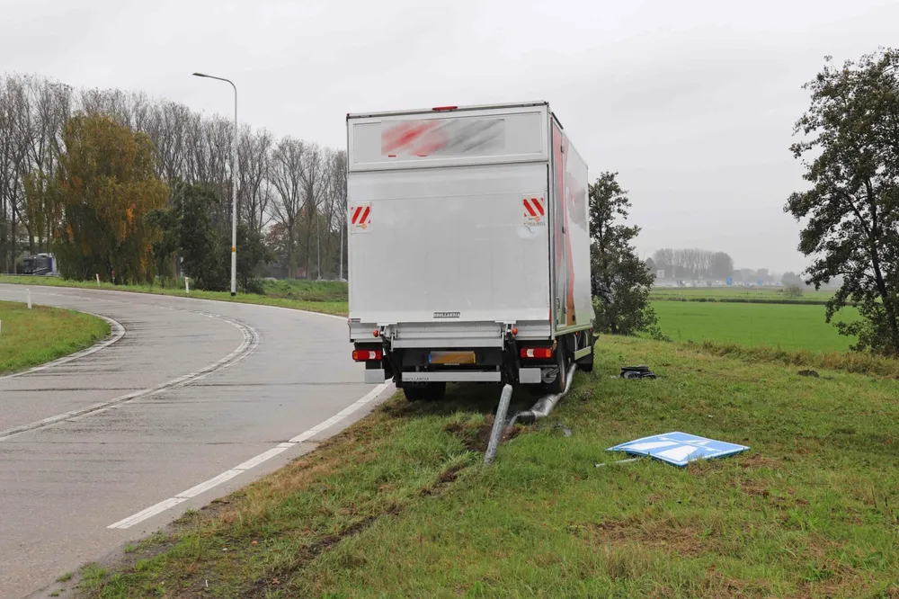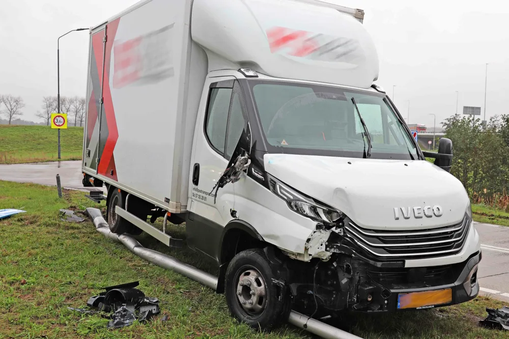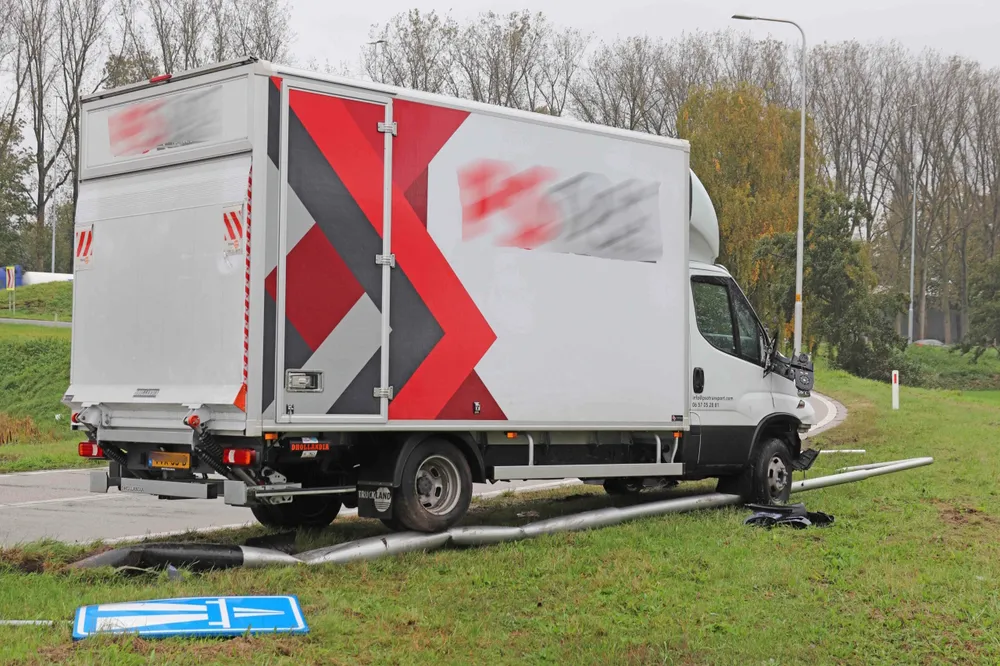 WAALWIJK - Op de Hoogeindse Rondweg in Waalwijk is woensdagmorgen 25 oktober, rond de klok van 12:45 uur, een bakwagen uit de bocht gevlogen.