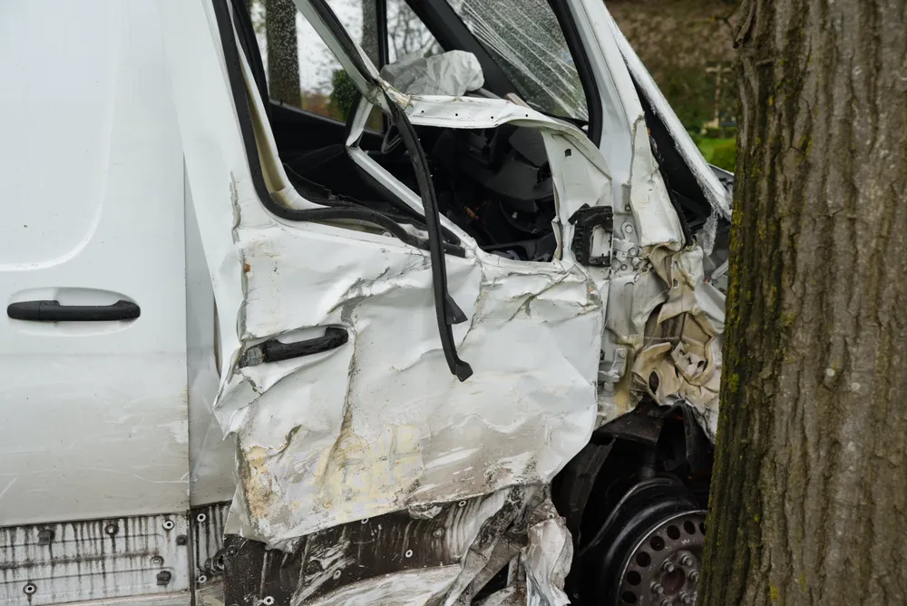 DE MOER - Op vrijdag 19 april, rond de klok van 11:00 uur, is een bestelbus tegen een boom gecrasht op de Middelstraat in De Moer.