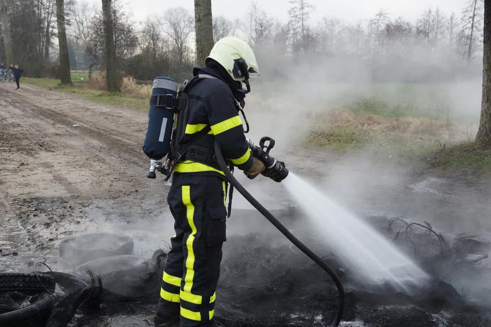 Aan de Dijkbaansesteeg in Kaatsheuvel stonden dinsdagmiddag rond 14.00 uur een stapel autobanden in de brand.
