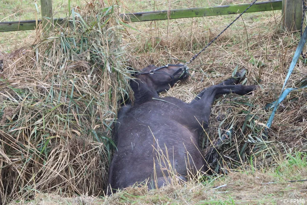 De dierenarts bleef nog aanwezig om het paard nader te onderzoeken. Voor zover bekend maakt het dier het goed en heeft het geen ernstige verwondingen overgehouden aan het incident.