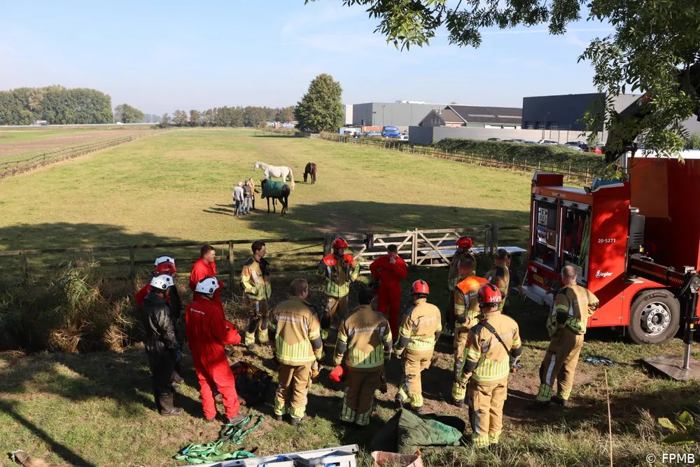 Het dier belandde in de sloot en kon op eigen kracht niet meer op het droge komen. De brandweer rukte met vier voertuigen uit, waaronder een HV-kraan, om het paard te bevrijden. Ook een dierenarts kwam ter plaatse om het dier te kalmeren en medische zorg te verlenen.