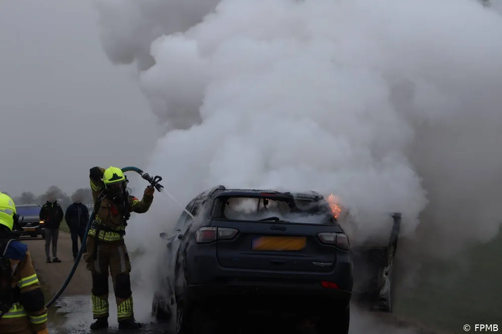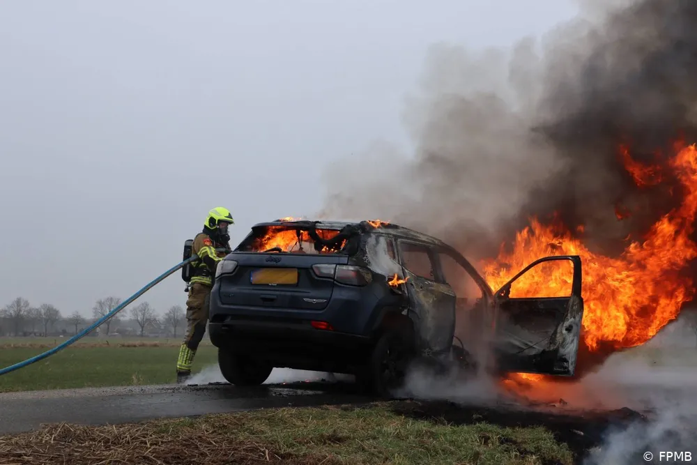 WASPIK – Twee inzittenden van een Jeep zijn maandag aan het begin van de middag met de schrik vrijgekomen nadat hun voertuig tijdens het rijden in brand vloog op de Vogelenzangweg. De weg loopt door het poldergebied tussen ’s Gravenmoer en Waspik.