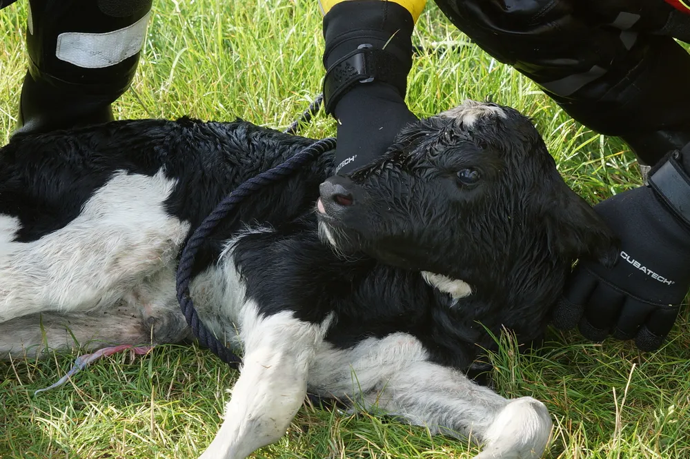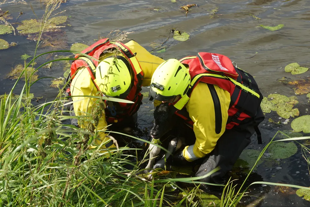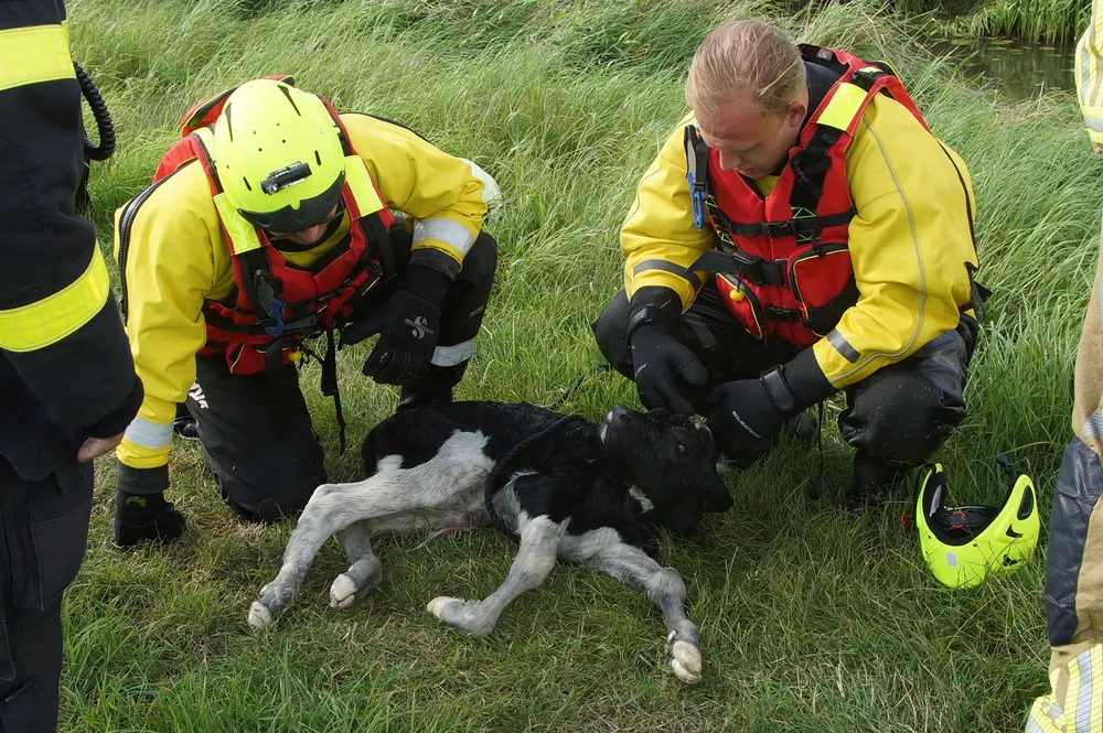 Twee brandweermannen gingen in speciale pakken te water en redde het jonge kalfje. Een boer uit de buurt ontfermde zich over het onfortuinlijke kalfje en bracht hem naar een warme stal waar het kalfje bij kon komen. De boer zal de eigenaar in kennis brengen en zal het kalfje weer terugbrengen naar de rechtmatige boer. Hoe het jonge kalfje in de sloot kon vallen is niet bekend. Voorbijgangers die het zagen hebben de brandweer gebeld.