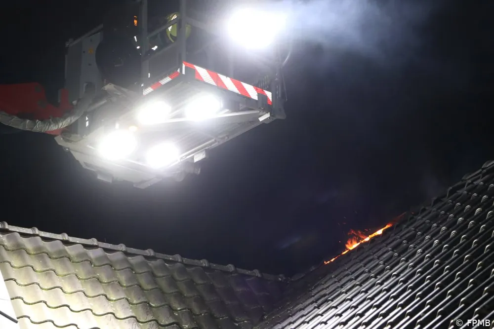 Bij aankomst van de hulpdiensten sloegen de vlammen zichtbaar uit het dak van de woning. Vanwege de locatie van de brand en het risico op uitbreiding werd direct opgeschaald. Twee tankautospuiten en een hoogwerker kwamen ter plaatse om de brand onder controle te krijgen.