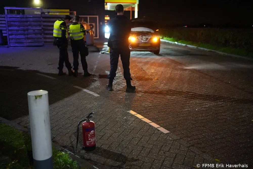 Toen hij de motorkap opende, sloegen de vlammen direct onder de kap vandaan. De bestuurder schakelde snel de hulpdiensten in en wist met een brandblusser van het tankstation het vuur grotendeels te doven.