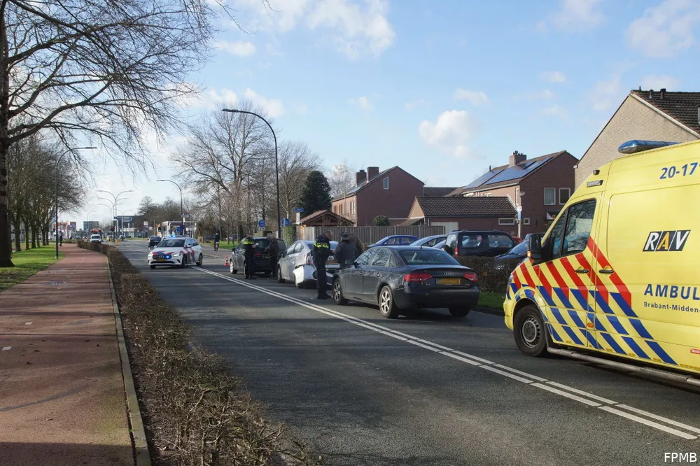 WAALWIJK - Op de Mozartlaan in Waalwijk zijn zaterdagmiddag drie auto's tegen elkaar gebotst. Een ambulance werd opgeroepen voor een van de bestuurders.