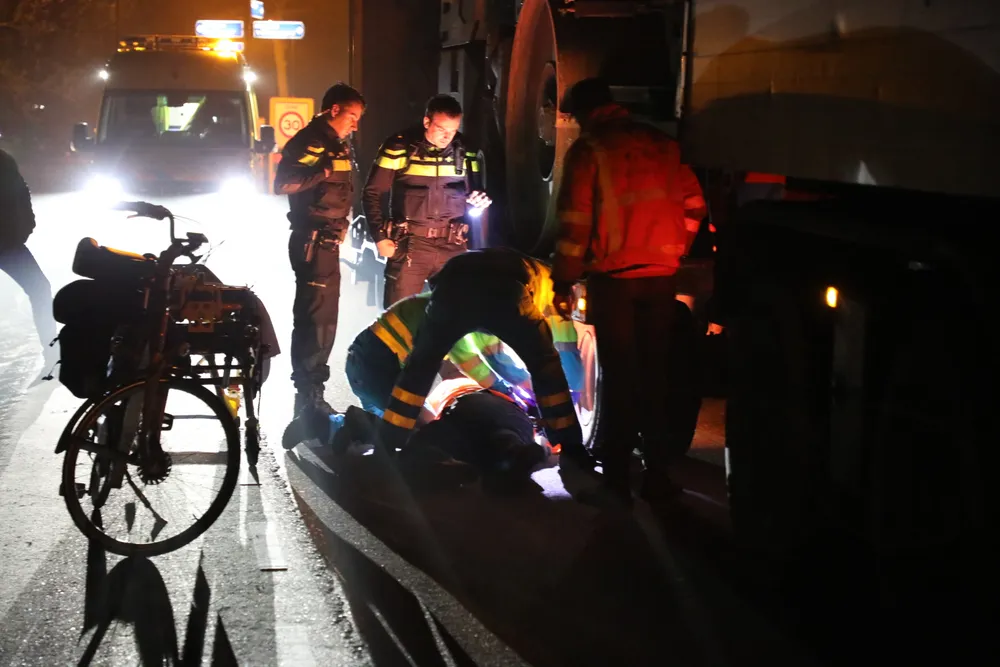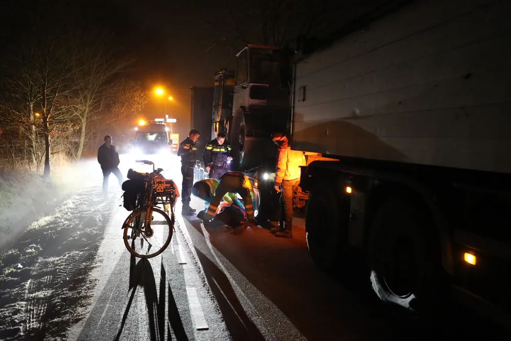 Een vrachtwagen met zware aanhanger haalde de man rustig in toen de man op de fiets opeens begon te slingeren. De vrachtwagenchauffeur zag in zijn spiegel de man vallen. Zonder een moment te twijfelen zette de chauffeur de vrachtwagen stil.
