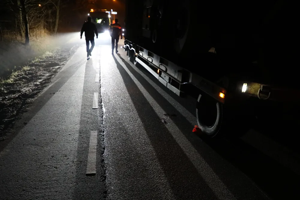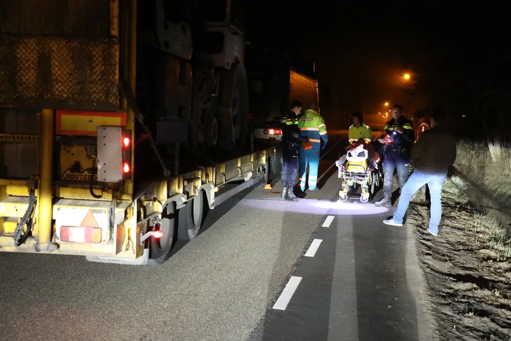 De chauffeur ging kijken hoe het met de man was. Deze lag op zijn buik op de weg, met een bebloed gezicht. De man was aanspreekbaar, maar viel steeds weg. De vrachtwagenchauffeur heeft daarop de hulpdiensten ingeschakeld.