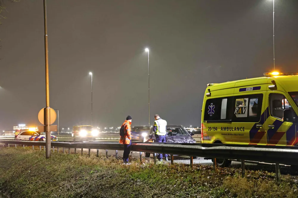 De 21-jarige bestuurder uit Sprang-Capelle verloor om een nog onbekende reden de controle over het stuur en kwam met zijn auto tegen de vangrail tot stilstand. De bestuurder werd voor onderzoek door de ambulance overgebracht naar het ziekenhuis. De toedracht van het ongeval wordt onderzocht.