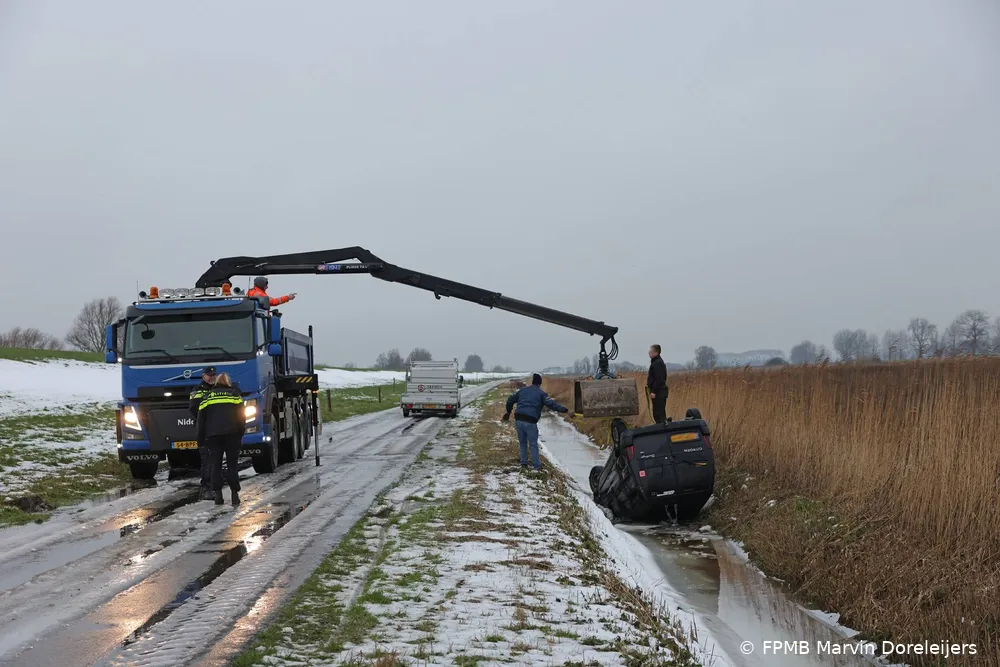 Het ongeval werd rond 08.45 uur ontdekt. Door de extreme gladheid was het voertuig vermoedelijk van de weg geraakt, over de kop geslagen en op het dak in de sloot tot stilstand gekomen. Omdat er geen bestuurder of andere inzittenden in de buurt van de auto te zien waren, belde een voorbijganger direct de meldkamer van de politie.