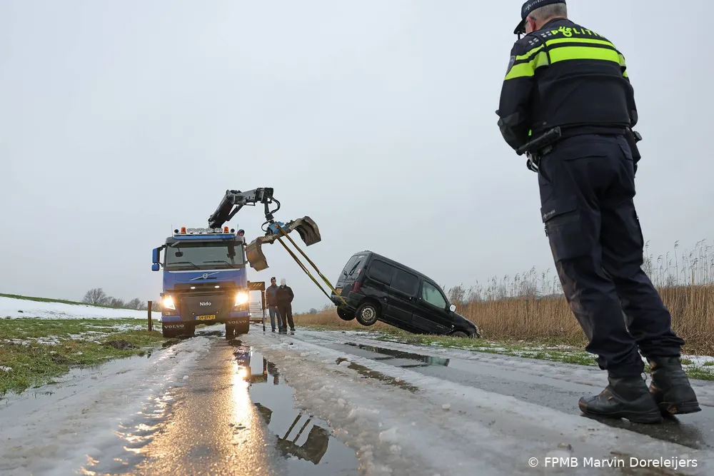 Tijdens het telefoongesprek met de meldkamer arriveerde een bergingsbedrijf om het voertuig uit de sloot te halen. Op datzelfde moment verscheen ook de vermoedelijke bestuurder ter plaatse. Deze kwam met een andere auto en aanhanger om het voertuig op te halen.