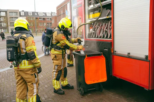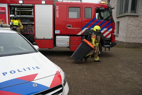 De brandweer was snel ter plaatse en heeft de brandende accu in een vuilcontainer met water geplaatst om verdere schade te voorkomen en de accu te koelen.