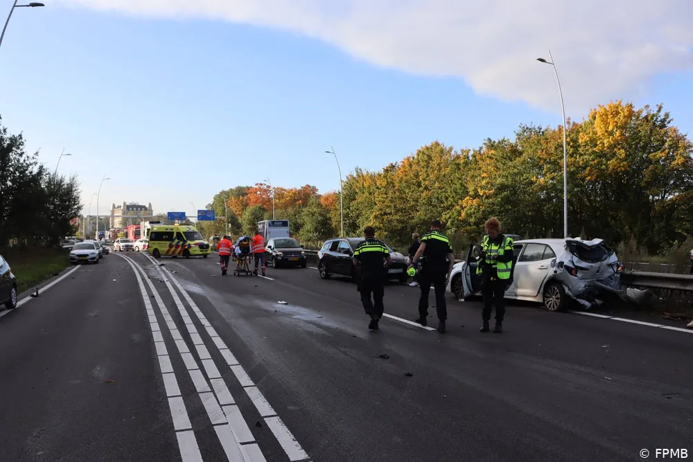 Bij het ongeval raakten twee personen gewond. Eén van hen is per ambulance overgebracht naar het ziekenhuis. De andere betrokkenen zijn ter plekke nagekeken door ambulancepersoneel.