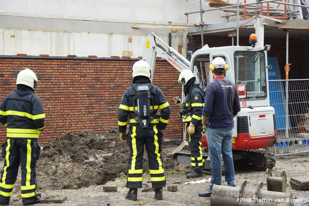 Bij de bouwplaats aan het Prins Bernhardplein in Kaatsheuvel is dinsdagmorgen een gaslek ontstaan bij het repareren van de waterleiding.