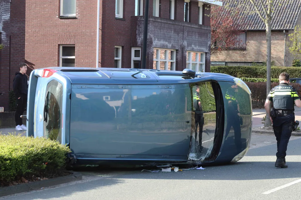 WAALWIJK - Op de Burgemeester Smeelelaan in Waalwijk is dinsdagmiddag 11 april, rond de klok van 17.15 uur, een geparkeerde auto geraakt door een openklappende vrachtwagendeur. De wagen kwam hierdoor op zijn kant terecht.