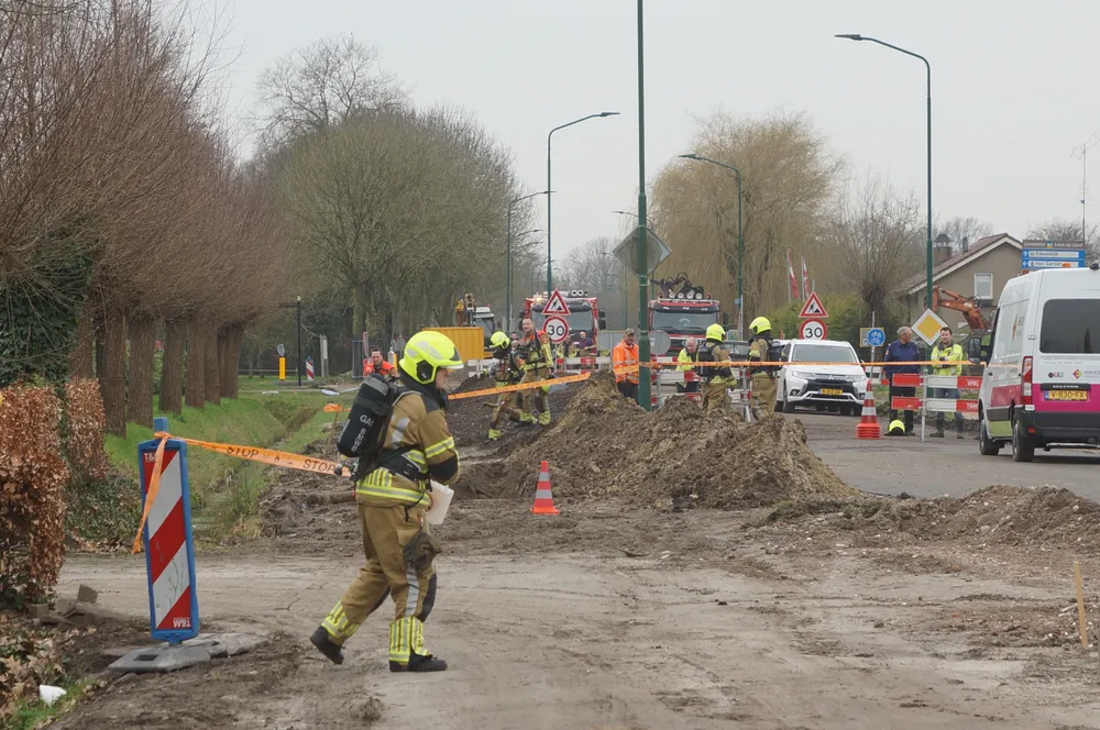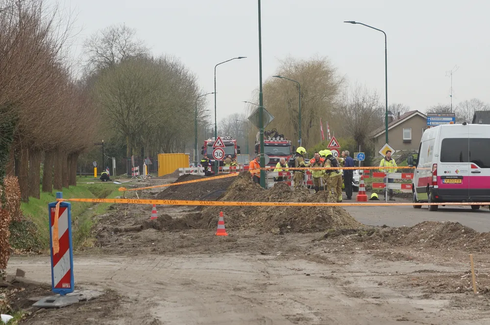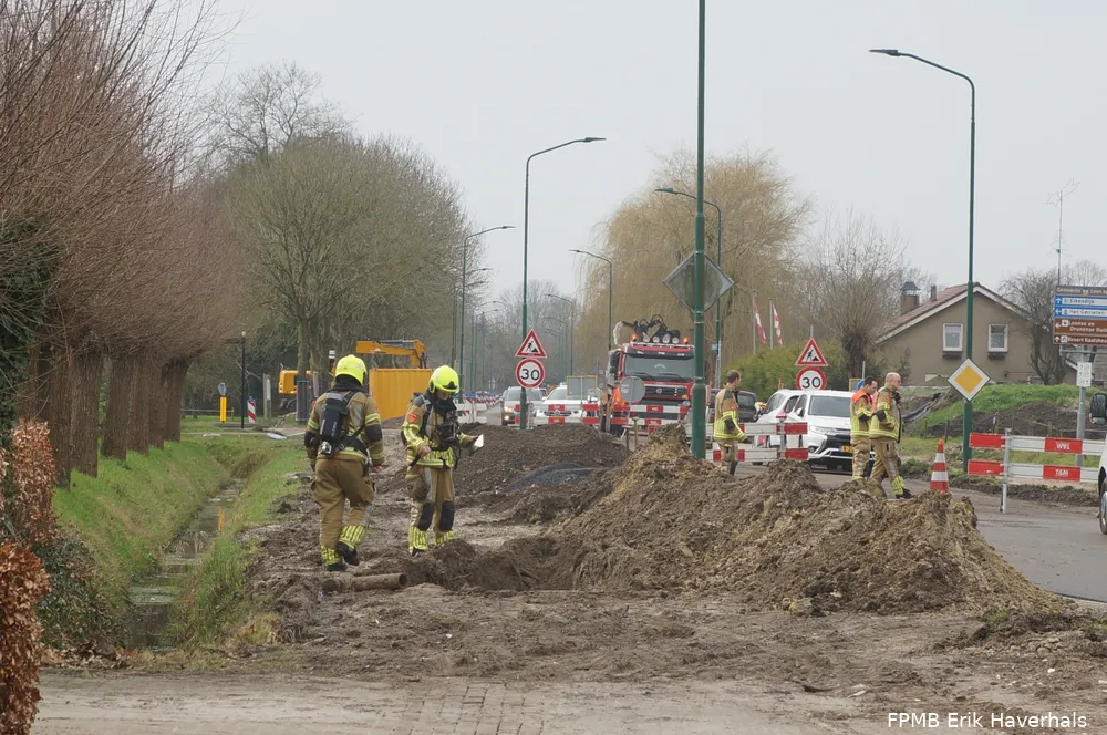 KAATSHEUVEL - Tijdens graafwerkzaamheden aan de van Haestrechtstraat in Kaatsheuvel is woensdagmiddag 22 februari, rond de klok van 13.00 uur, een flinke gasleiding geraakt.