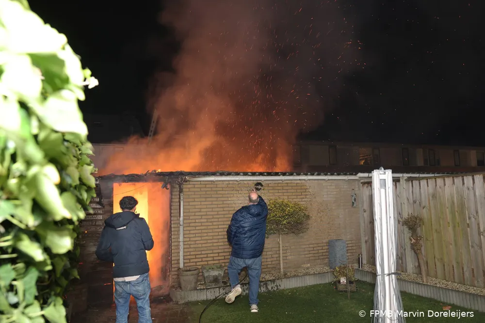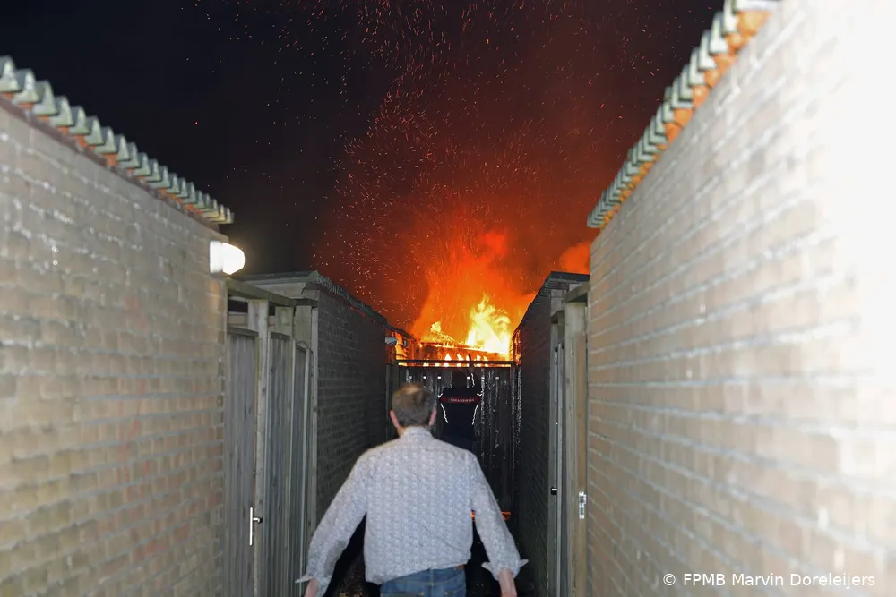 Rond 23.50 uur kwam de melding binnen bij de brandweer. Omwonenden ontdekten het vuur en probeerden het in eerste instantie zelf te blussen met tuinslangen. Ondanks deze snelle inzet breidde de brand zich in korte tijd verder uit.