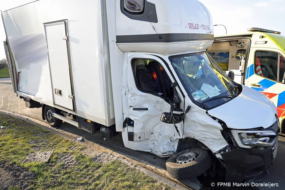 De bestuurder van de bakwagen lag gewond op het gras naast de weg. Over de ernst van zijn verwondingen is nog niets bekend.