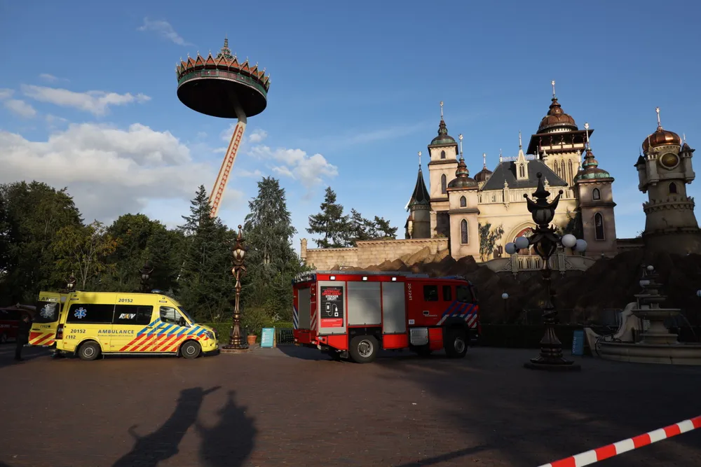Rondom Symbolica heeft de brandweer het gebied met linten afgezet. De attractie is ontruimd.