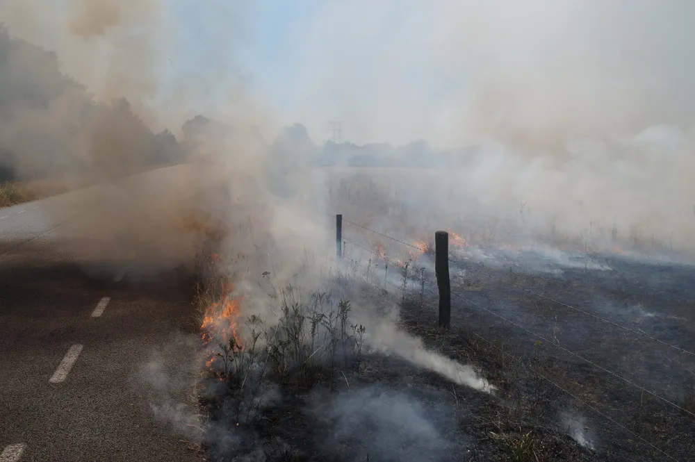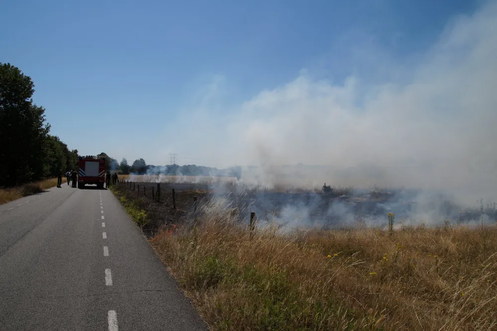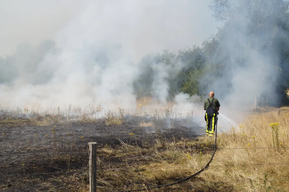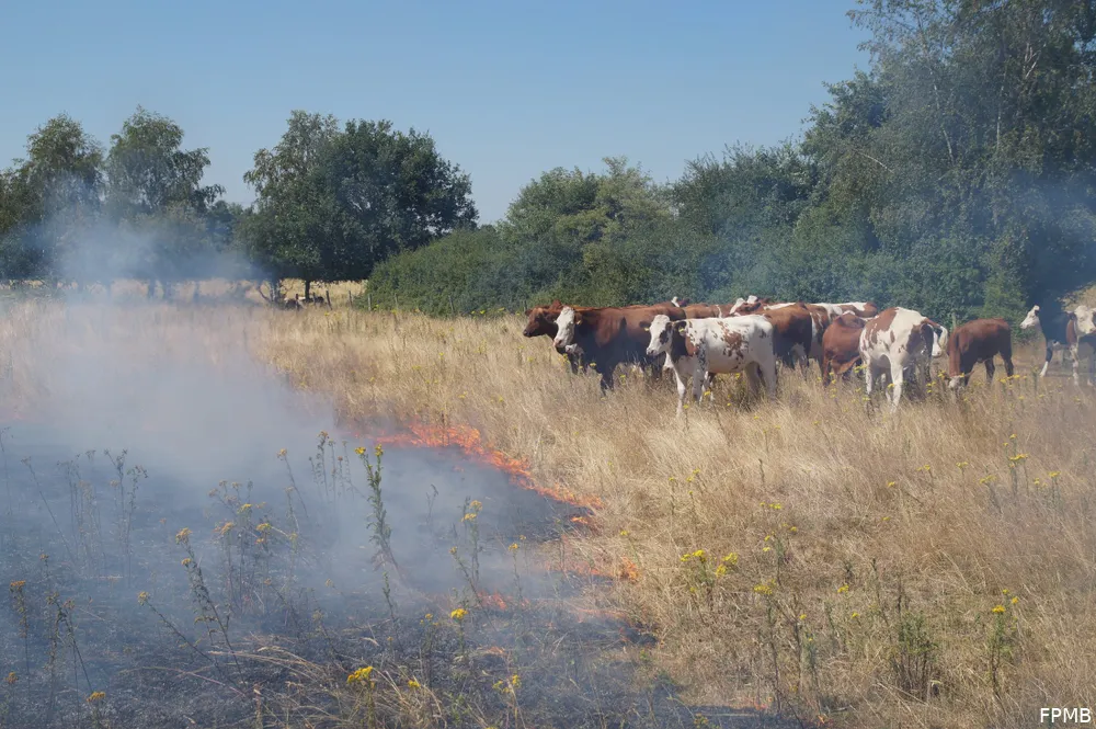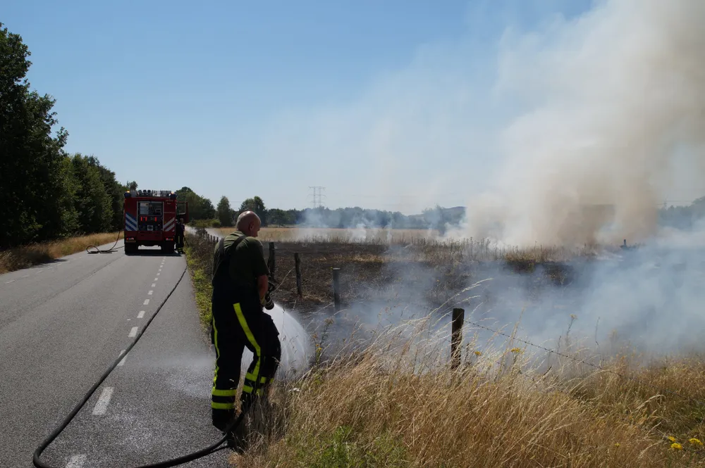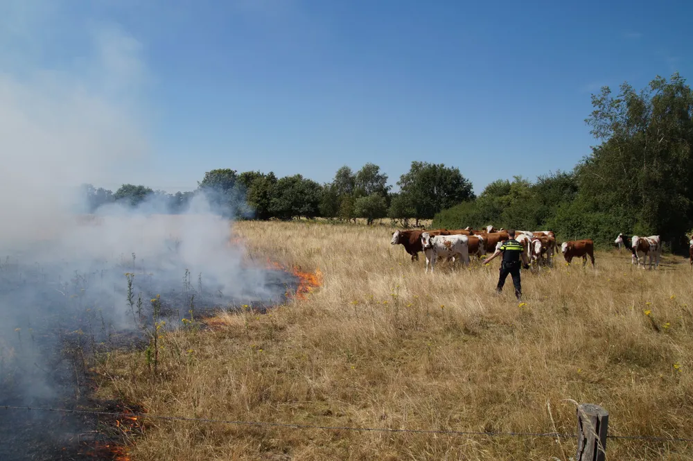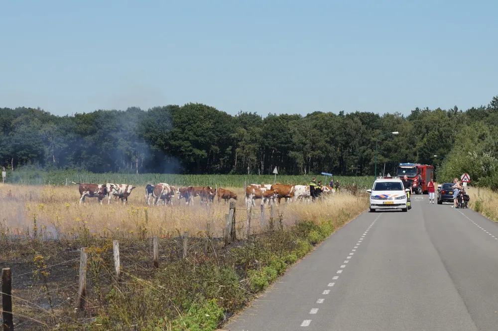 Op deze locatie bij Huis ter Heide stond een groot stuk weiland in lichterlaaie. De politie die als eerste ter plaatse was moest een kudde koeien bij de vlammen vandaan halen. De brandweer zette meerdere stralen in om de felle brand te blussen. De natuur is hors en hors droog waardoor alles zeer brandbaar word.
