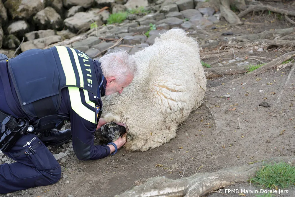 Een van de agenten, Erik, die vroeger boer is geweest, probeerde het lammetje alsnog geboren te laten worden. Ondanks zijn inspanningen bleek het lammetje al overleden te zijn. Door de ligging zat het dier dusdanig vast dat een natuurlijke bevalling niet meer mogelijk was.