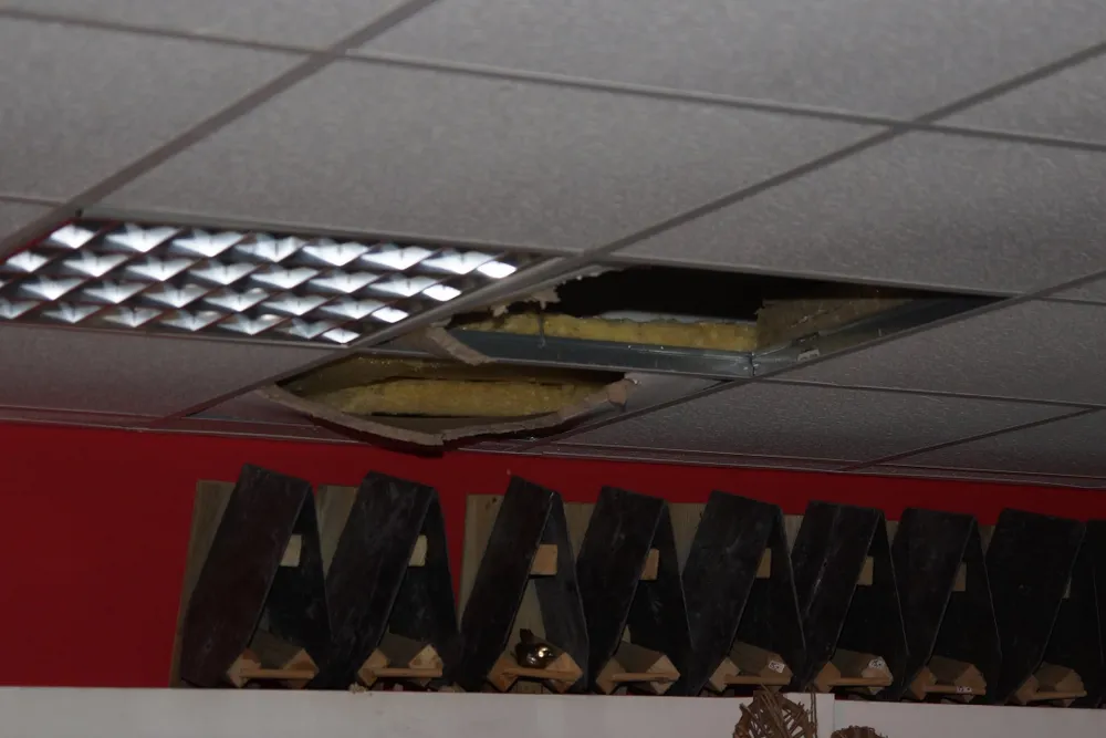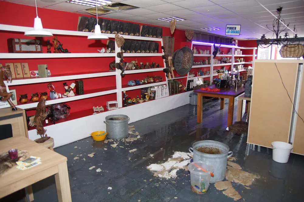Door de lekkage kwamen de plafondplaten in de winkel naar beneden. De brandweer en politie kwamen ter plaatse. De bewoners van de woning boven de winkel waren in kennis gesteld en kwamen naar hun woning. De winkel heeft door de lekkage de nodige waterschade opgelopen. Hoe de afvoerslang kon los schieten is niet bekend. Inmiddels is het meeste water in de winkel opgedweild.