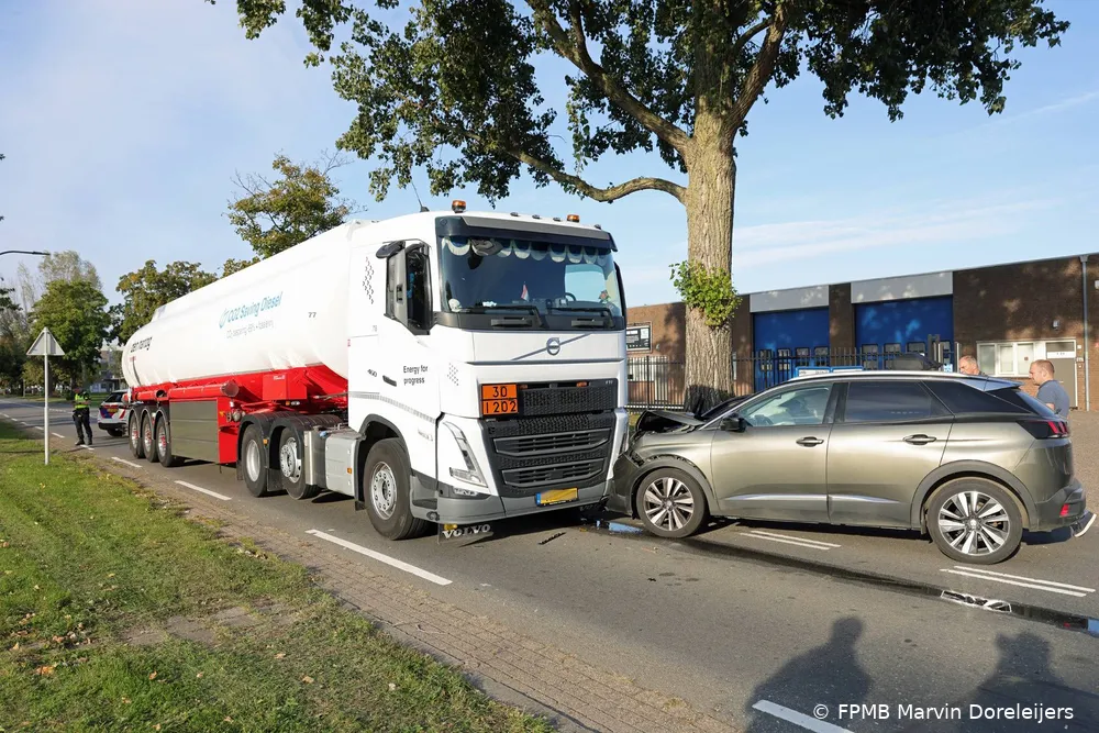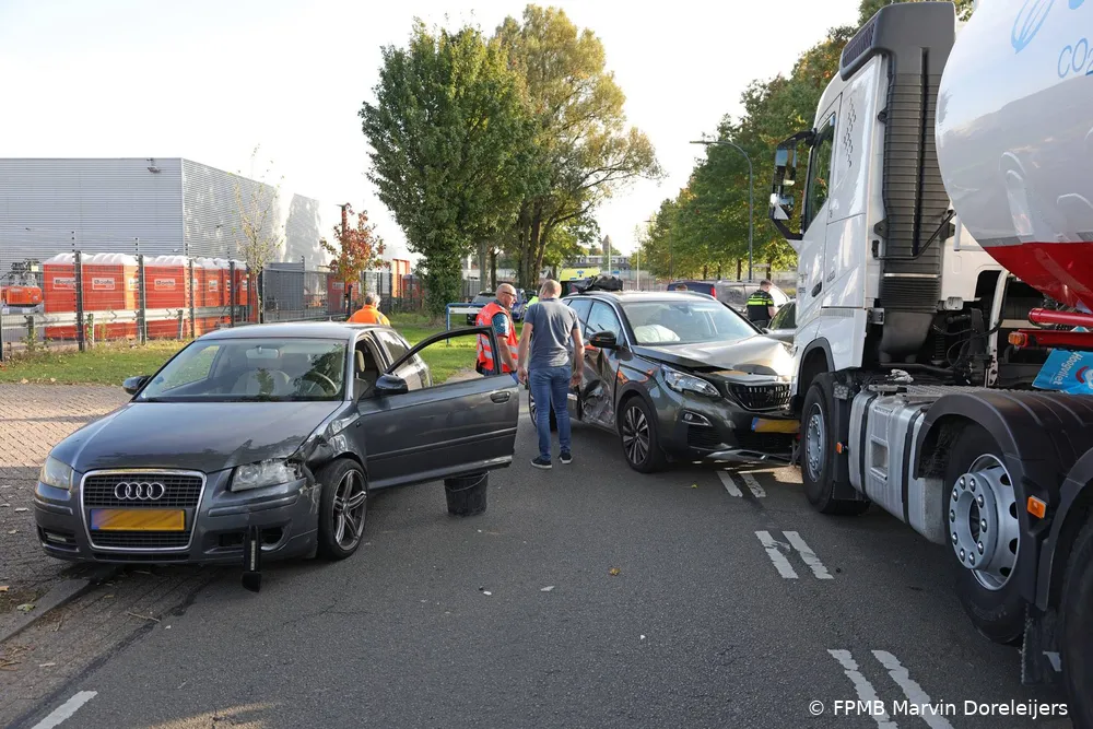 Een bestuurder reed vanaf een bedrijventerrein de weg op en kwam daarbij in botsing met een passerende tankwagen die voorrang had. Vanuit de andere richting naderde een derde auto, die tegen één van de voertuigen botste.