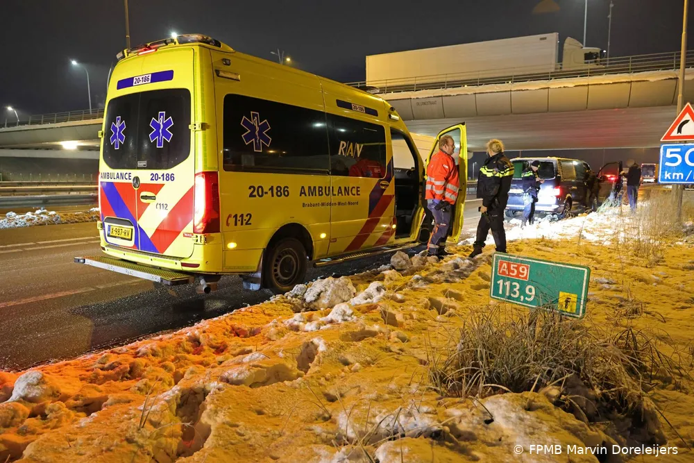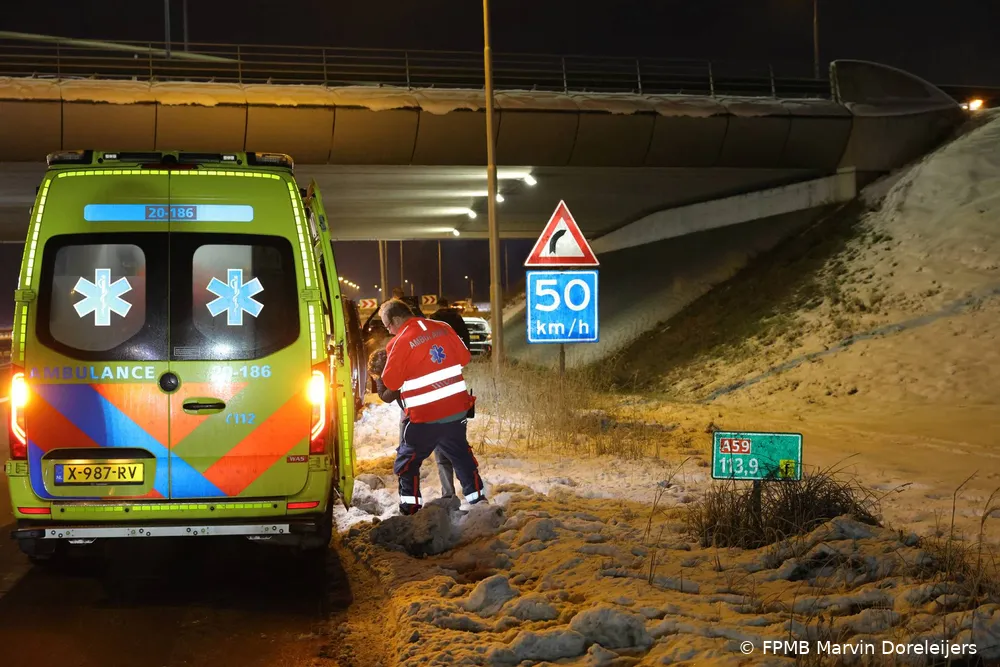 WAALWIJK – Een automobilist is dinsdagochtend 6 januari rond 06.45 uur met zijn voertuig in een sloot beland langs de A59. Het ongeval gebeurde nadat de bestuurder de macht over het stuur verloor door een ophoping van sneeuw op het wegdek.