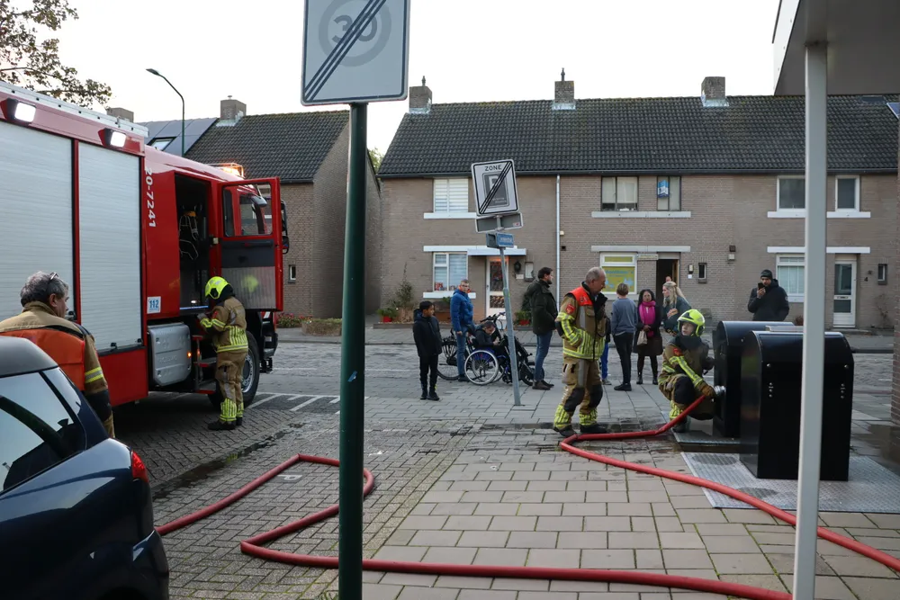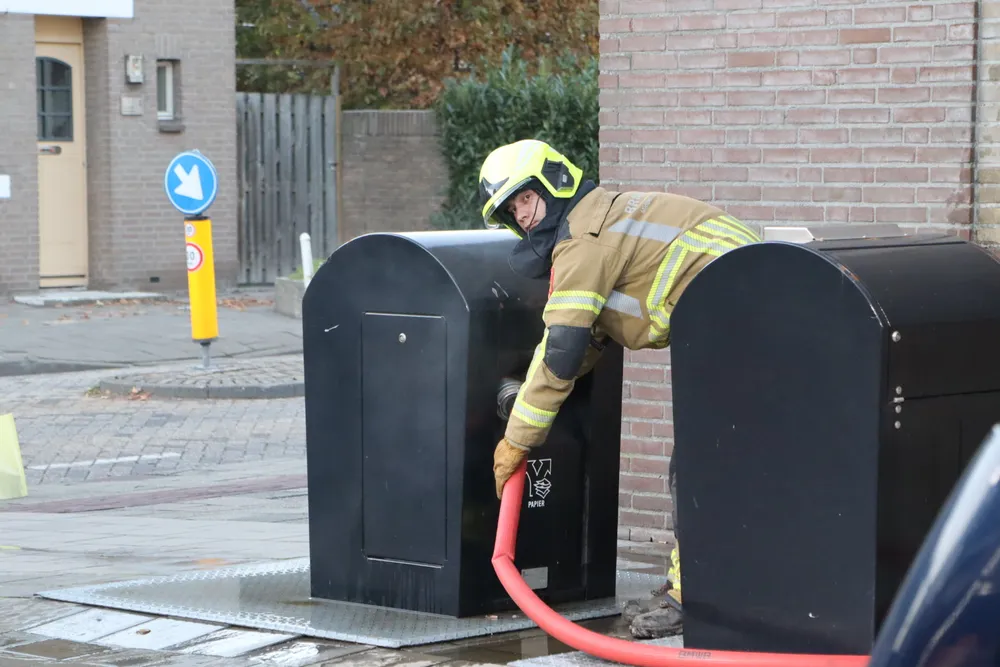 KAATSHEUVEL - Op de kruising van de Raadhuisstraat met de Lievekenshoek in Kaatsheuvel stond zaterdagmiddag 11 november, rond de klok van 16.30 uur, een ondergrondse papiercontainer in brand.