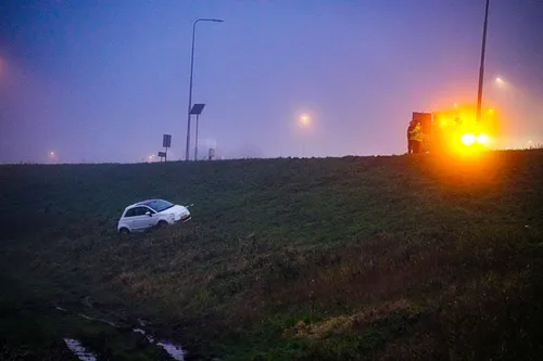 Haar auto begon te tollen en kwam uiteindelijk onderaan het talud tot stilstand. De bestuurster raakte niet gewond, maar ze was wel hevig geschrokken. De toerit blijft afgesloten tijdens de bergingswerkzaamheden, die worden uitgevoerd door een takelbedrijf. De oorzaak van het ongeval is nog onduidelijk.
