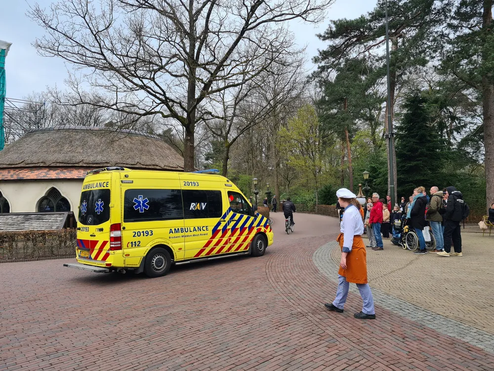Een gast zou onwel zijn geworden nabij het pannenkoekenrestaurant / sprookjesbos. De hulpdiensten kwamen snel ter plaatse en kregen assistentie van het Mobiel Medisch Team die per traumahelikopter landde op de Speelweide. Het slachtoffer is met spoed per ambulance overgebracht naar het Elisabeth-TweeSteden Ziekenhuis in Tilburg orderbegeleiding van de trauma-arts. De omgeving was ruim afgezet voor het publiek. De pagode lag ook even stil omdat de traumaheli in het park was.
