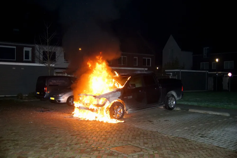 De brandweer was snel ter plaatse maar kon niet meer voorkomen dat de auto verloren ging. In de auto lag een gastank waardoor de brandweer extra voorzichtig te werk ging met blussen. Ook een auto die naast de brandende pick-up truck stond liep flinke schade op. Hoe de brand kon ontstaan is niet bekend. De politie zoekt getuigen die mogelijk iets gezien hebben. De brand trok veel bekijks.