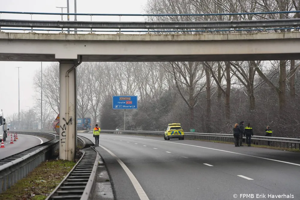 Vanwege het onderzoek heeft Rijkswaterstaat de A59 vanaf ’s-Hertogenbosch richting Waalwijk volledig afgesloten. Verkeer wordt omgeleid via afrit Drunen en kan via het verkeersknooppunt terug richting Waalwijk. In de richting van Waalwijk naar ’s-Hertogenbosch is slechts één rijstrook beschikbaar; de overige rijstroken zijn afgesloten.