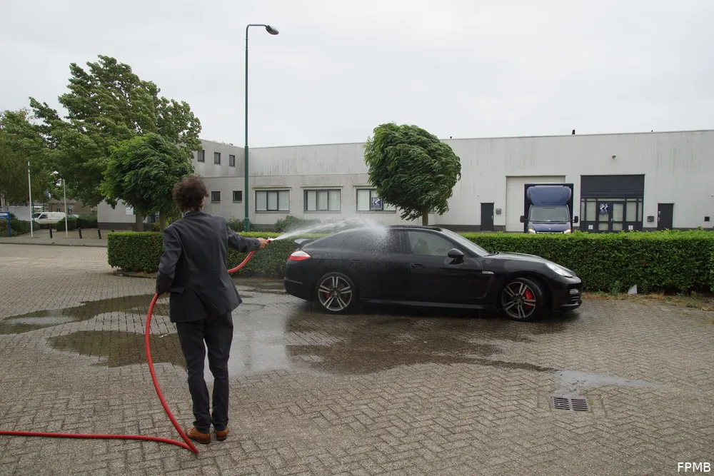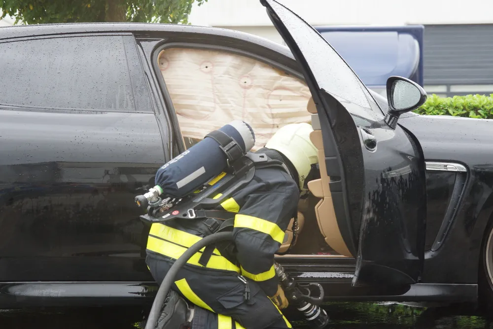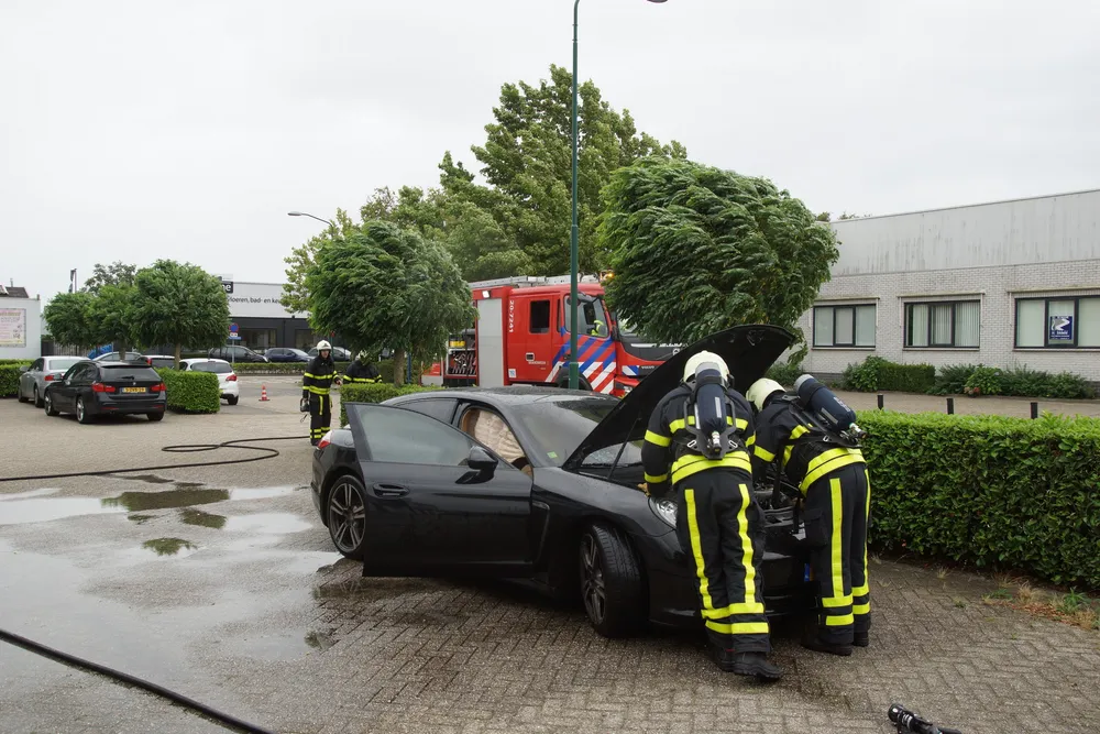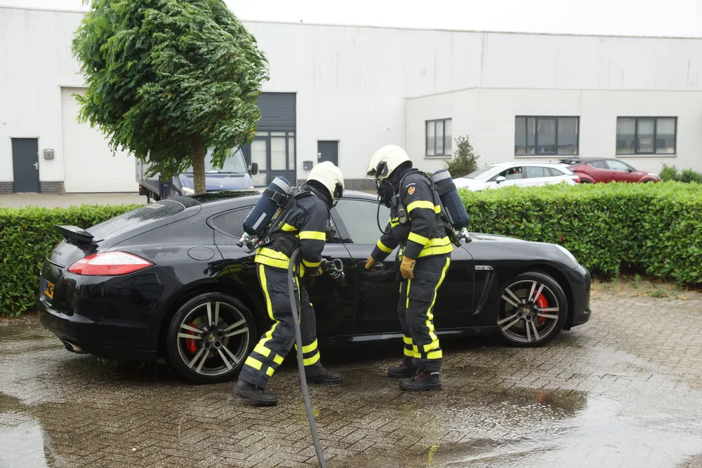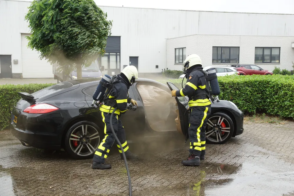 Alerte medewerkers van het bedrijf zagen rook uit de auto komen en pakte de brandslang van het bedrijf en begonnen te blussen. Inmiddels was de brandweer ook gewaarschuwd. Toen de brandweer ter plaatse kwam namen zij de bluswerkzaamheden over. De Porsche liep door de brand flinke brandschade op. Waarschijnlijk is kortsluiting de oorzaak van de brand.